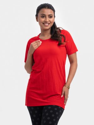 Ladies’ floral printed T-shirt in stretched cotton knit fabric. Round neck and short sleeves.