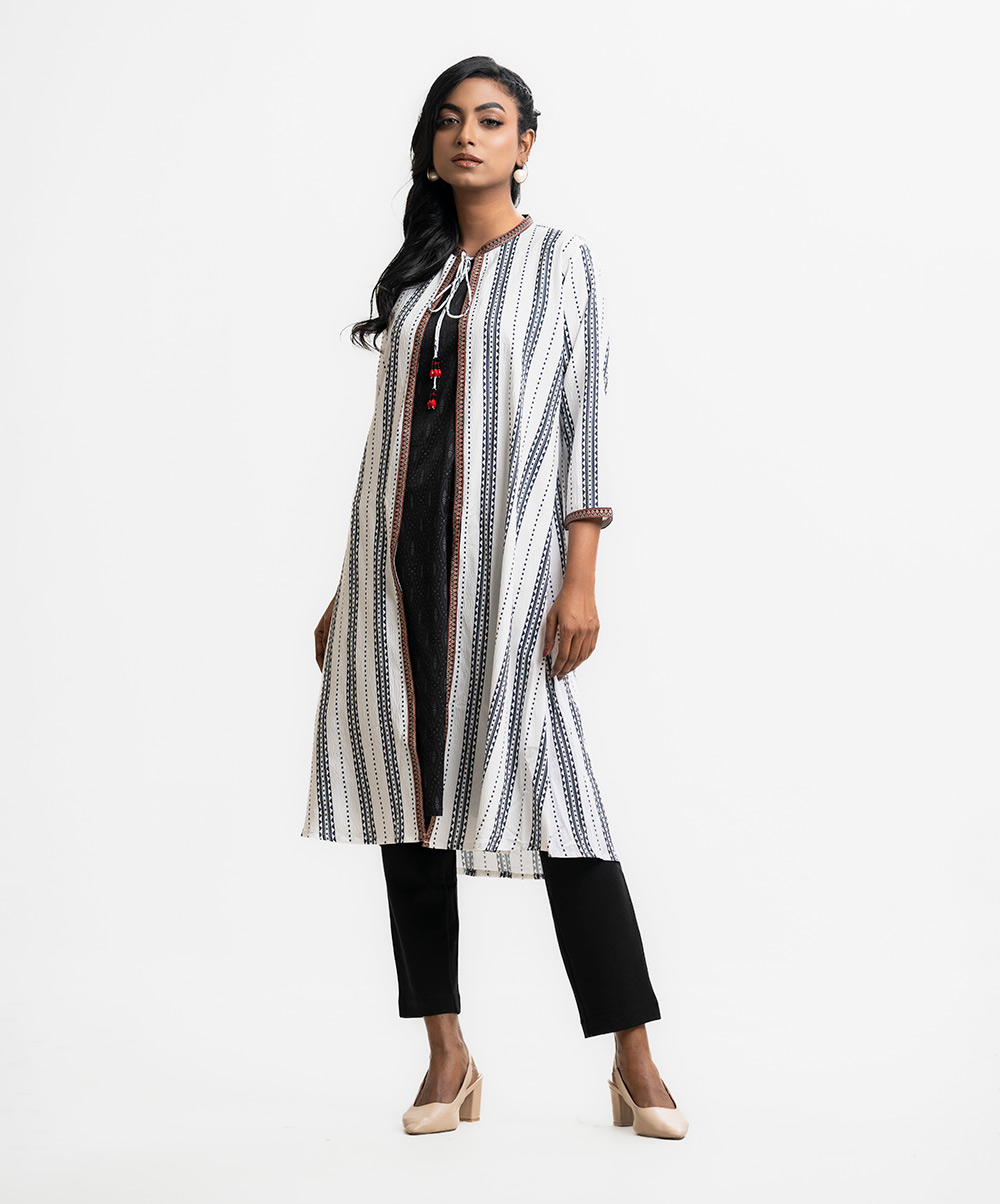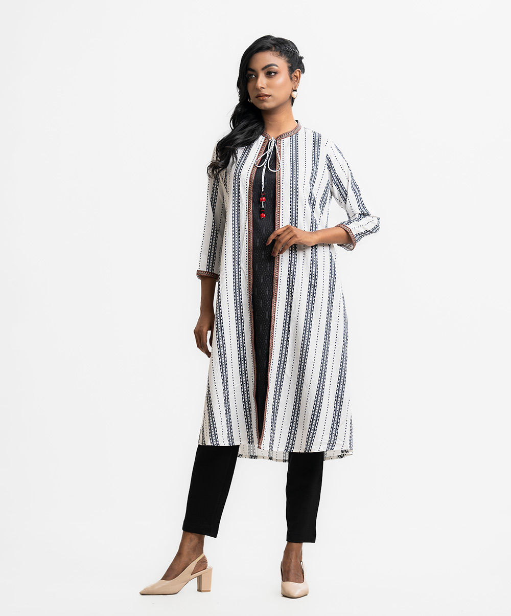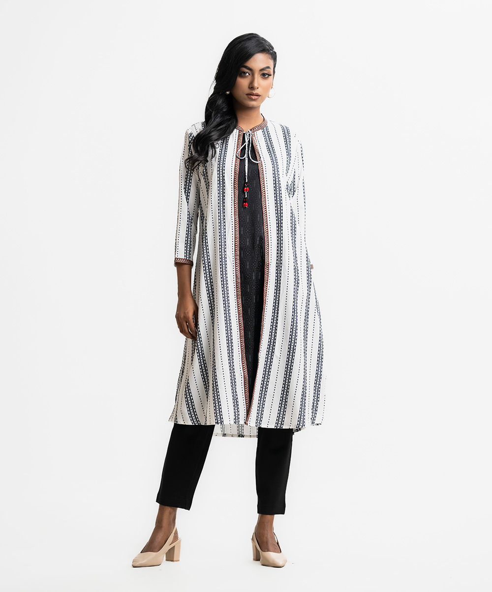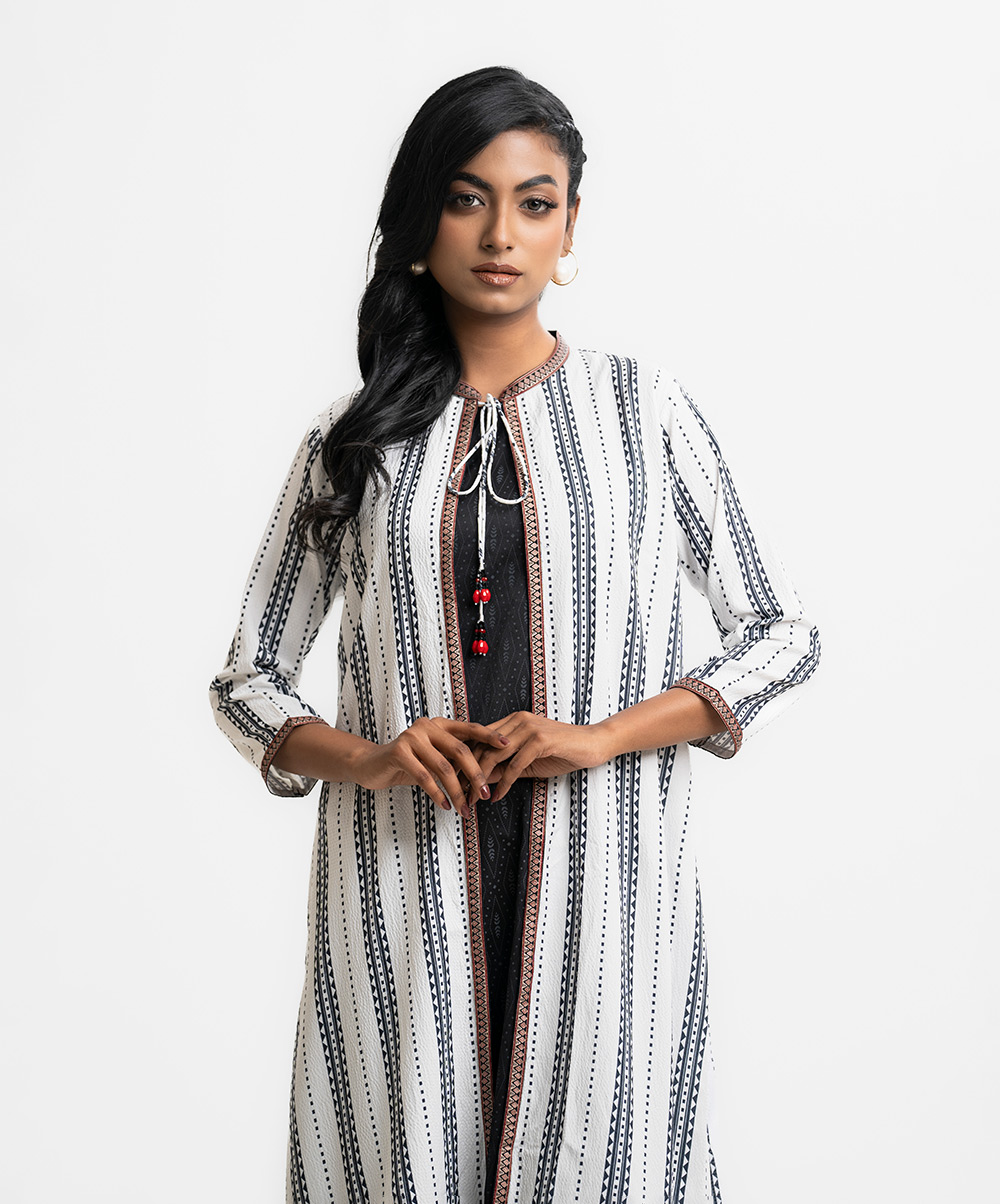 Black and White Georgette Tunic with Shrug