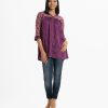 Printed Tent-style top in crepe fabric. V-neck, lantern-sleeved. Button fastening and slit at the front.