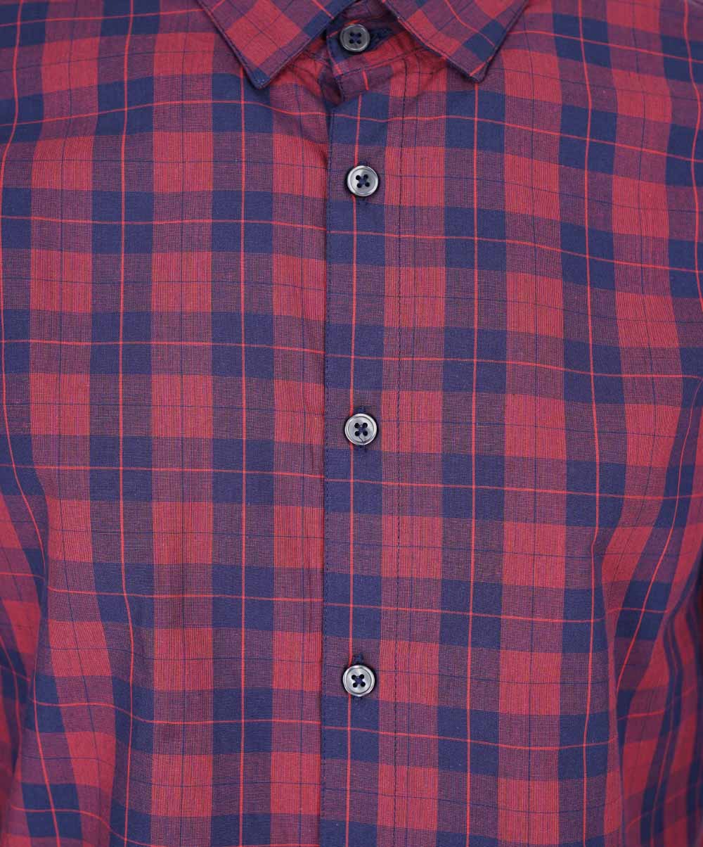 Contrast checked shirt slim fit collared shirt featuring long sleeves with buttoned cuffs and a button-up front.