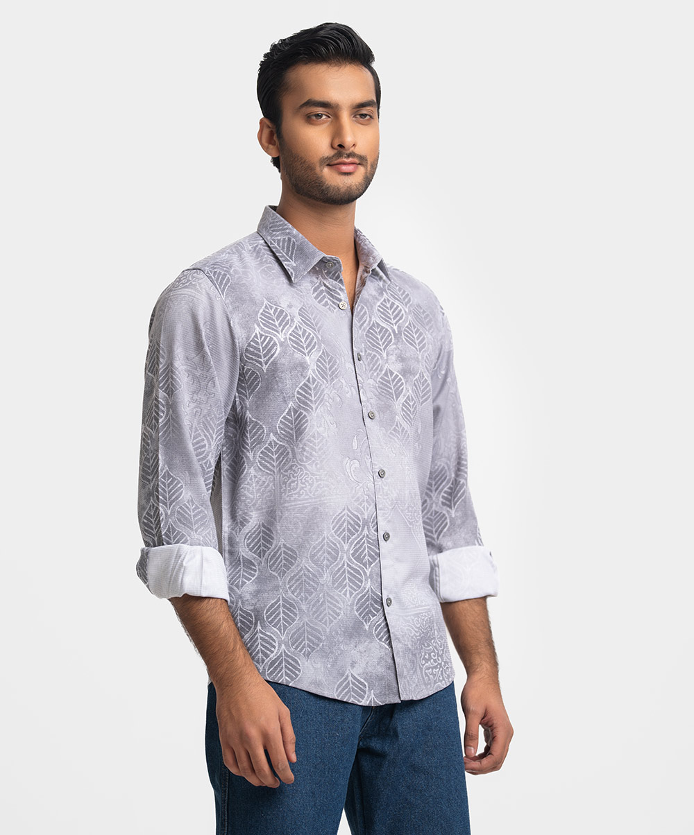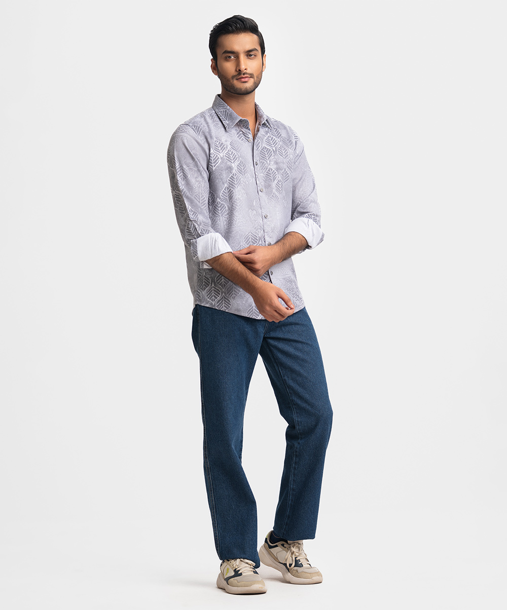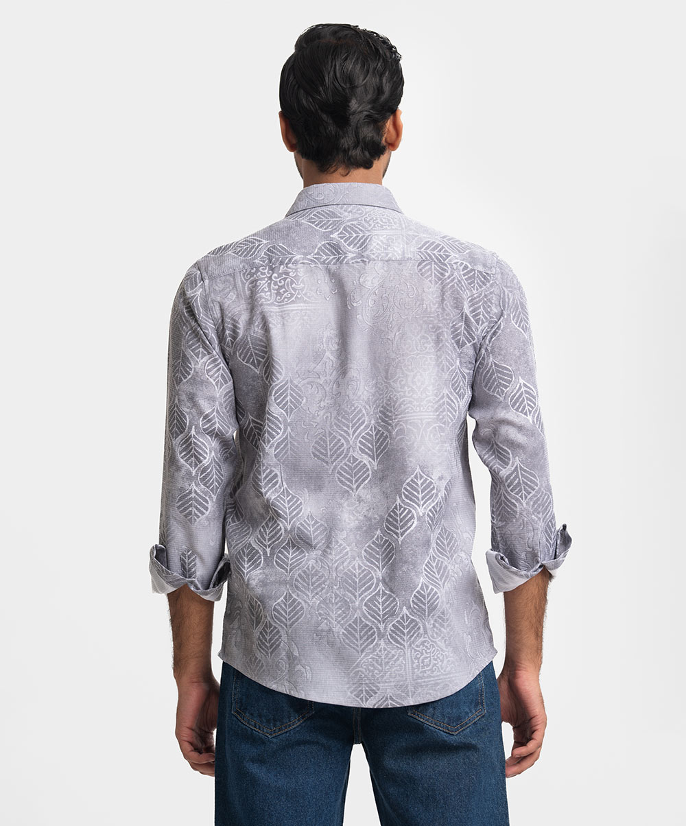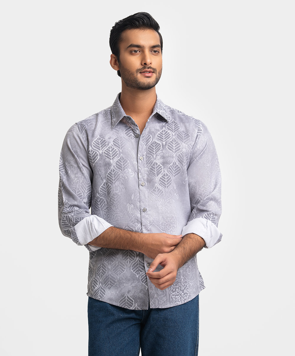 Gray Premium Textured Woven Business Casual Shirt