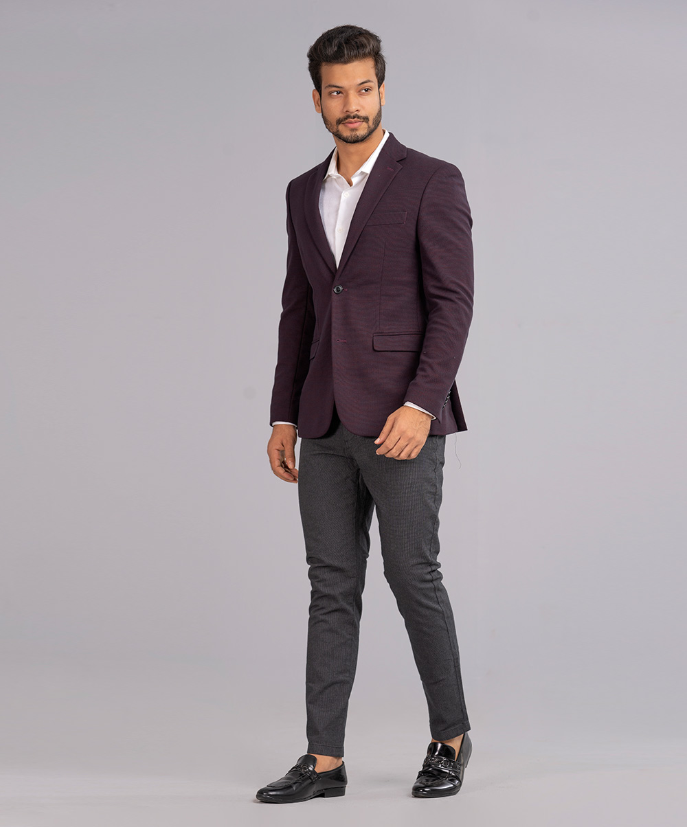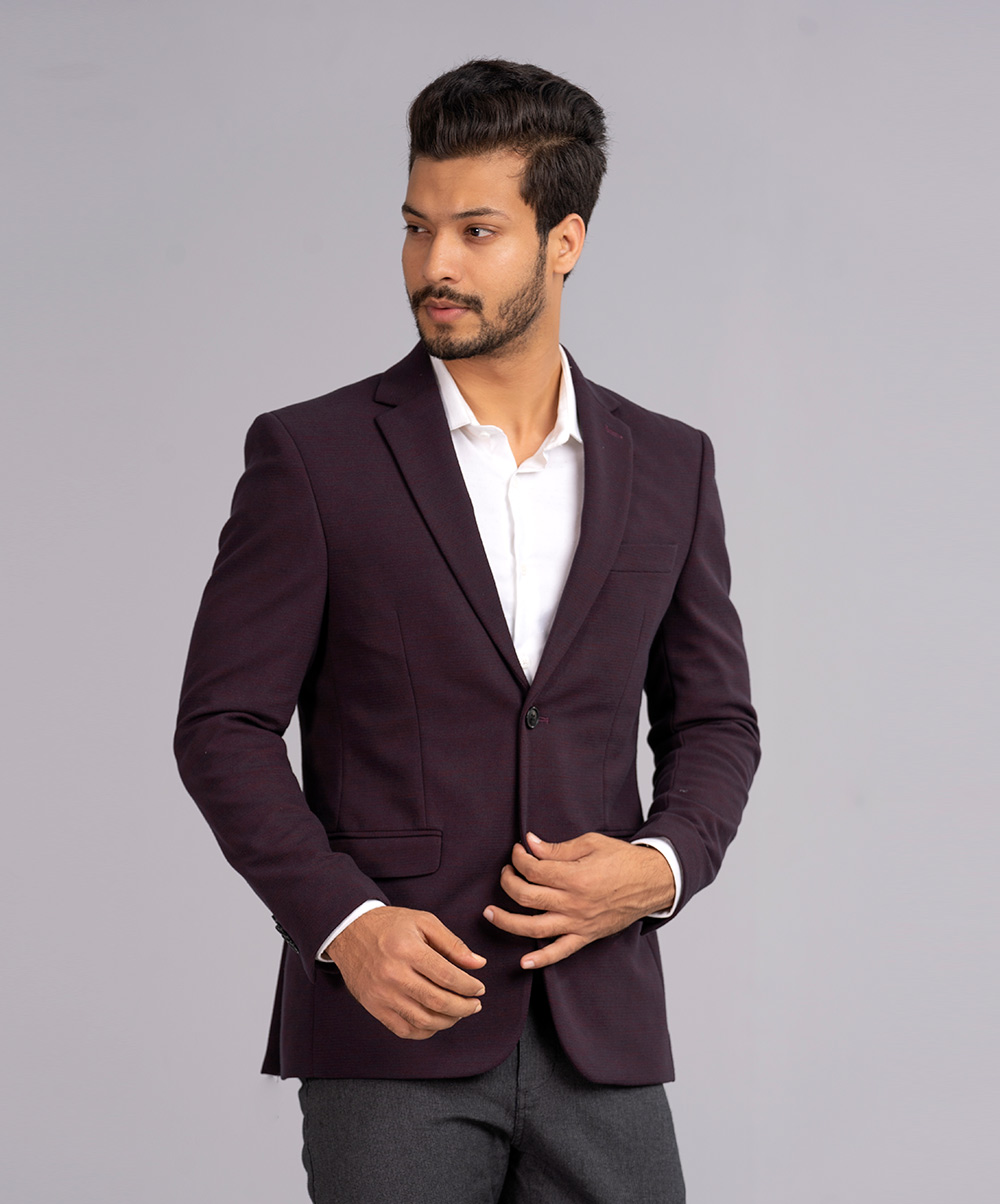 Burgundy Fitted Business Formal Blazer