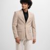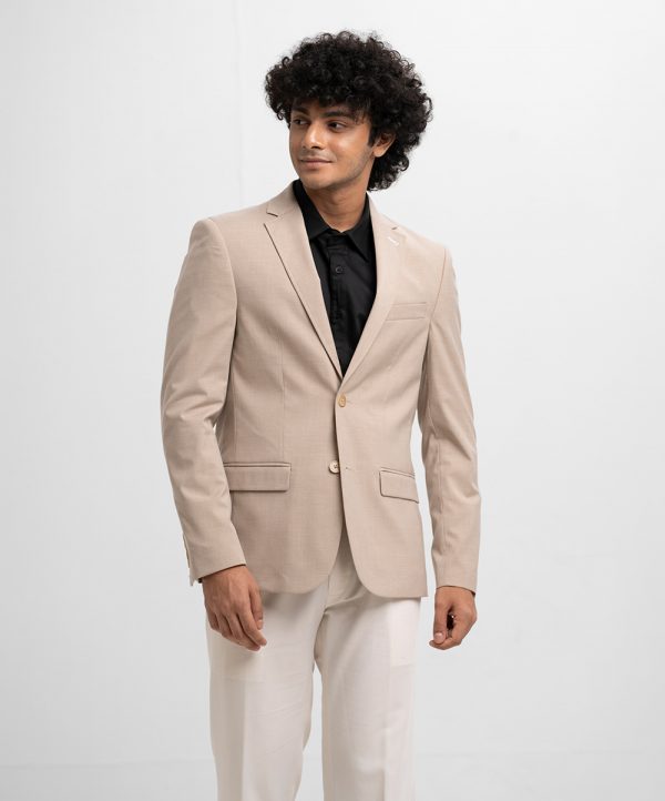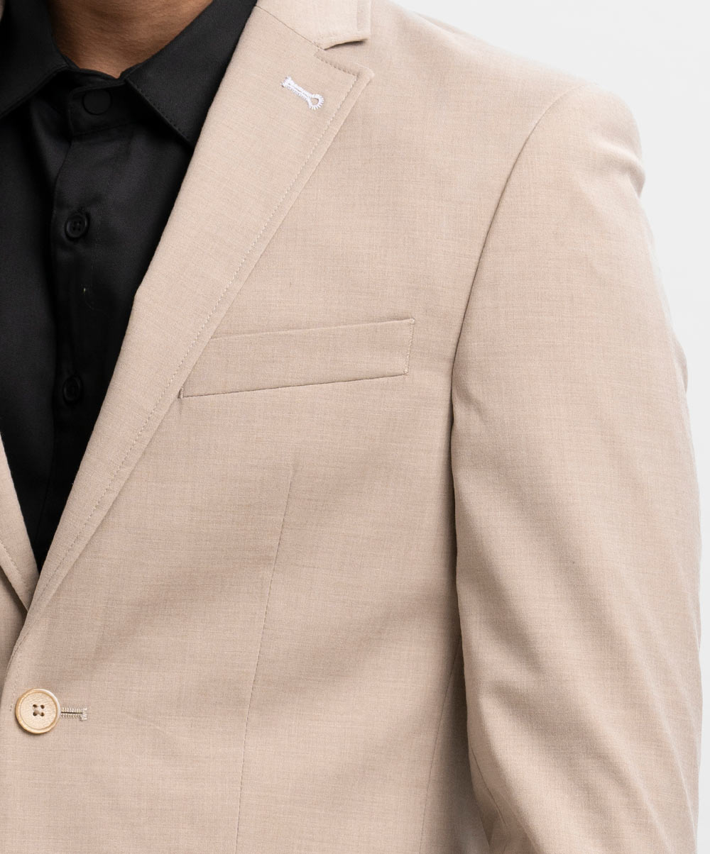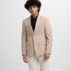 Slim-fit, single-breasted business formal blazer in soft, woven fabric with a stretchable silhouette. Notched lapels with a decorative buttonhole, two buttons at front, and decorative buttons at cuffs. Welt chest pocket, front pockets with flap and inner pockets. Lined.