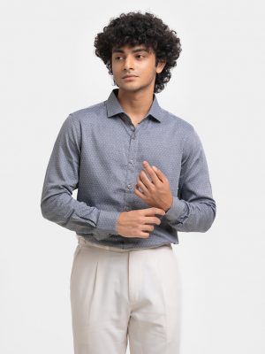 Men’s slim fit business formal shirt in cotton blended fabric.Classic collar and long sleeves with adjustable button cuff.