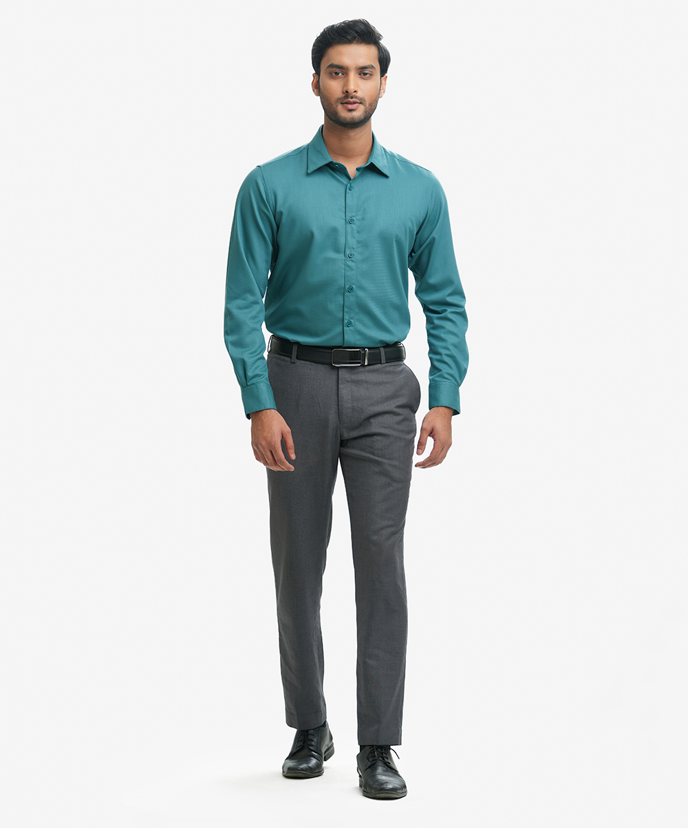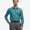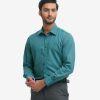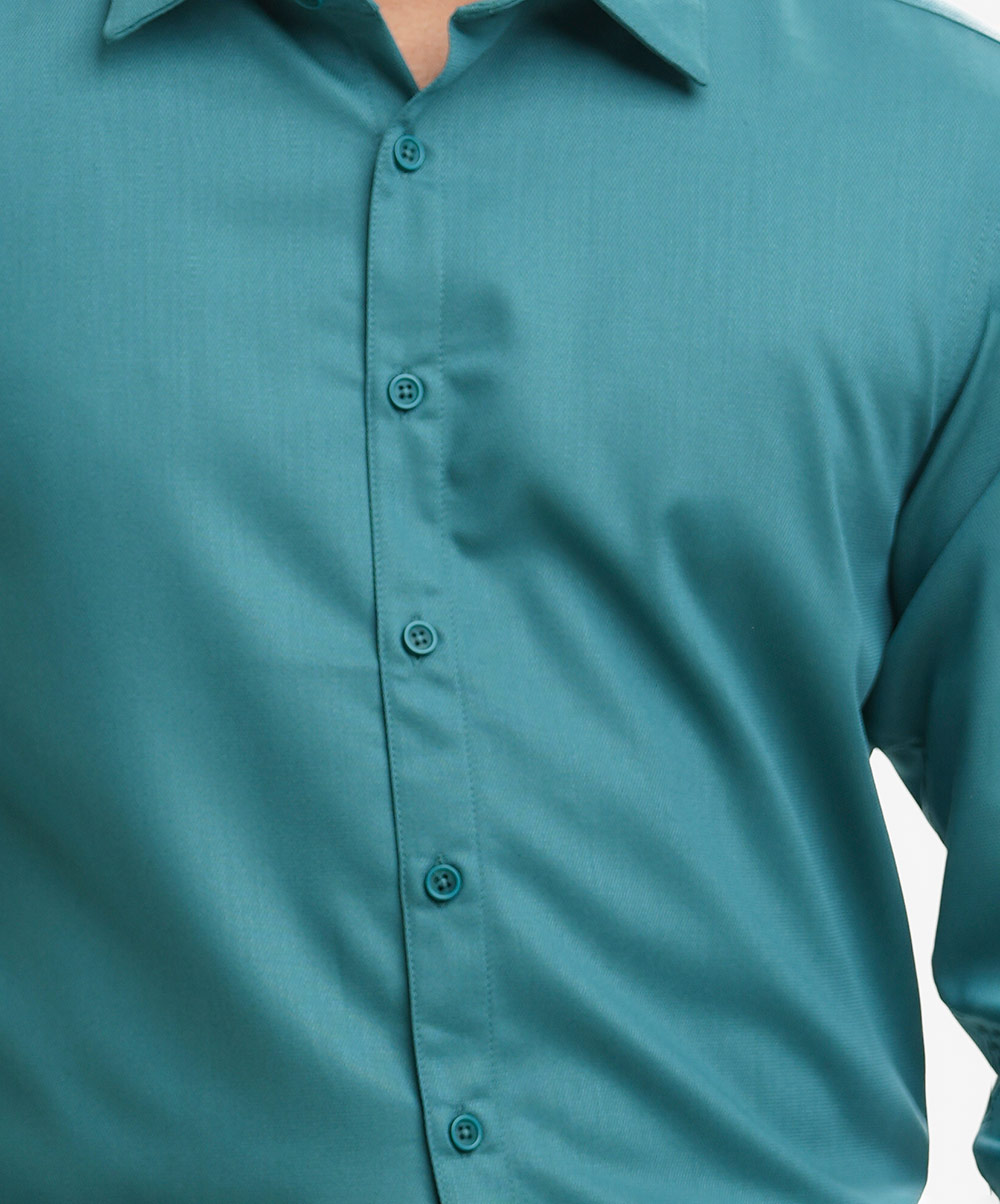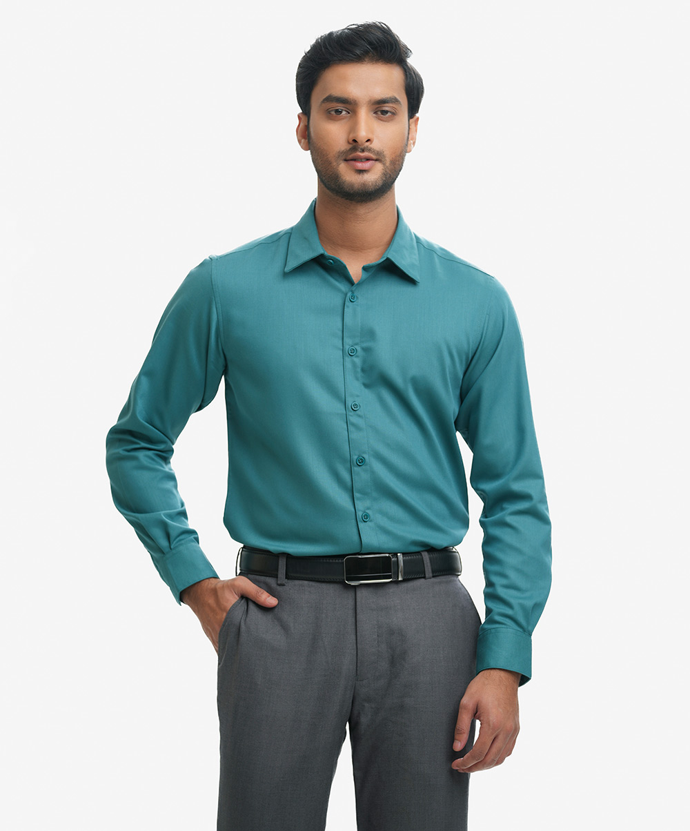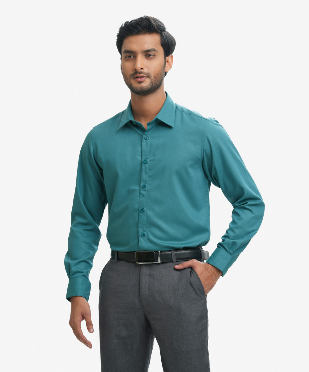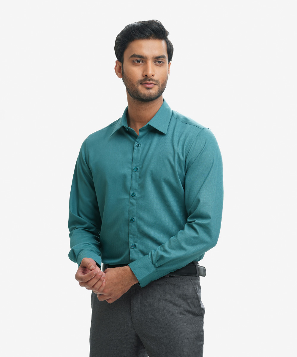 Green Cotton-blend Business Formal Shirt