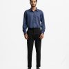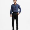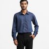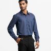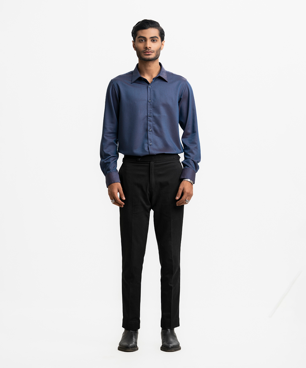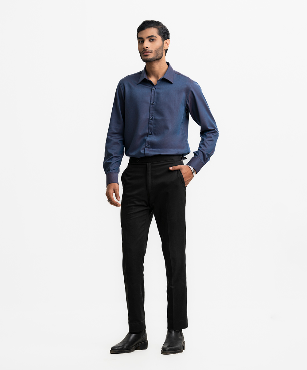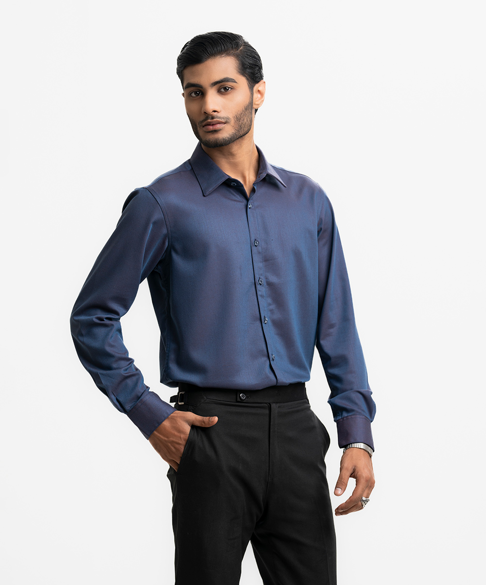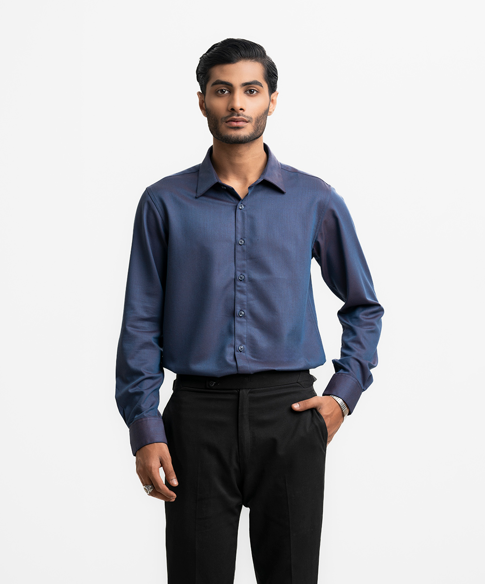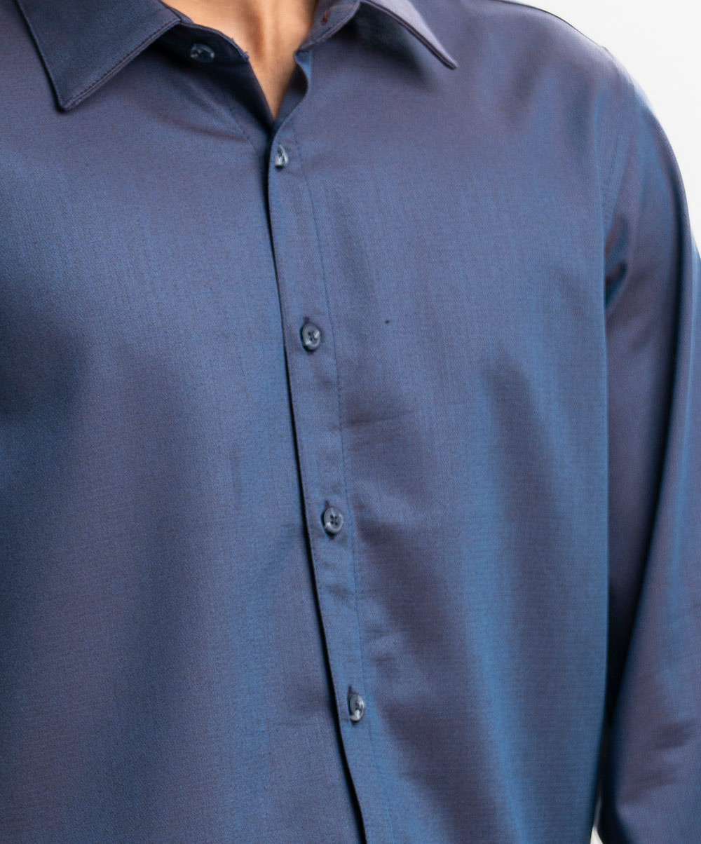 Long-sleeved business formal shirt in dual-tone blended fabric. Classic collar, adjustable button cuffs.