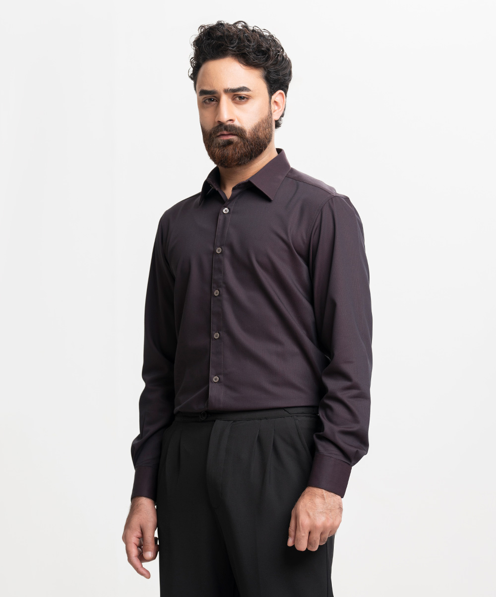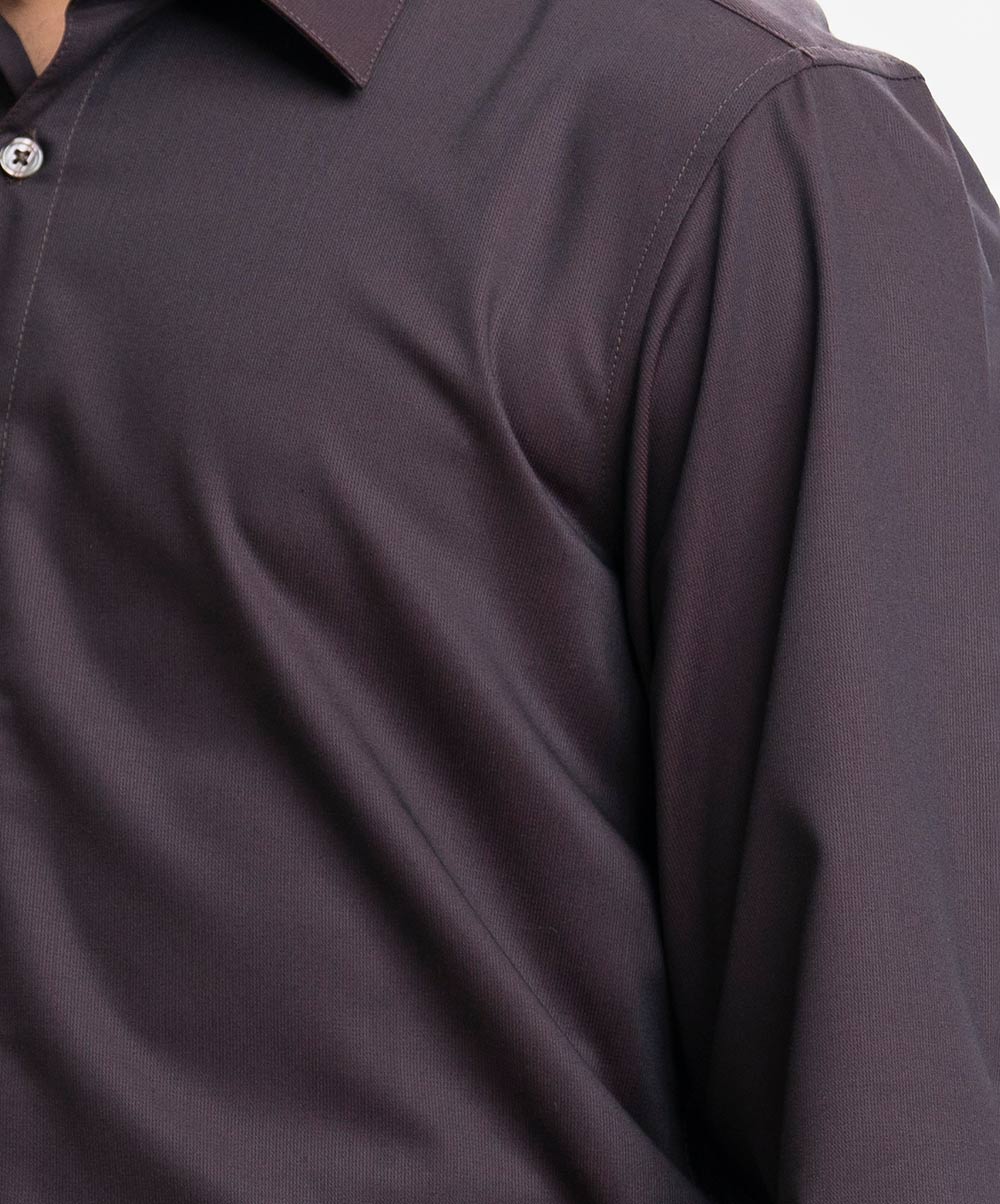 Dark Brown Cotton-blend Business Formal Shirt