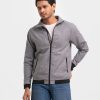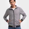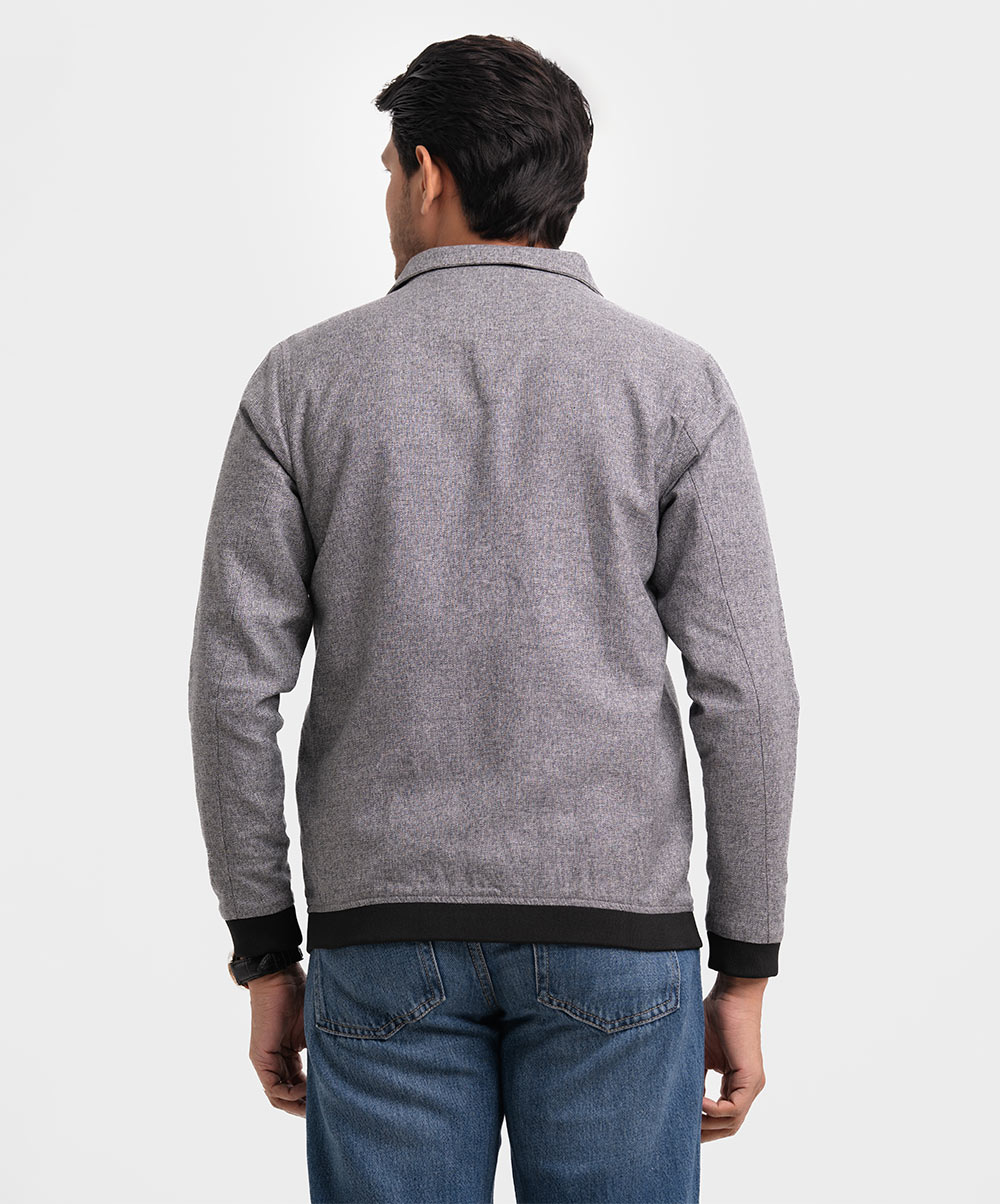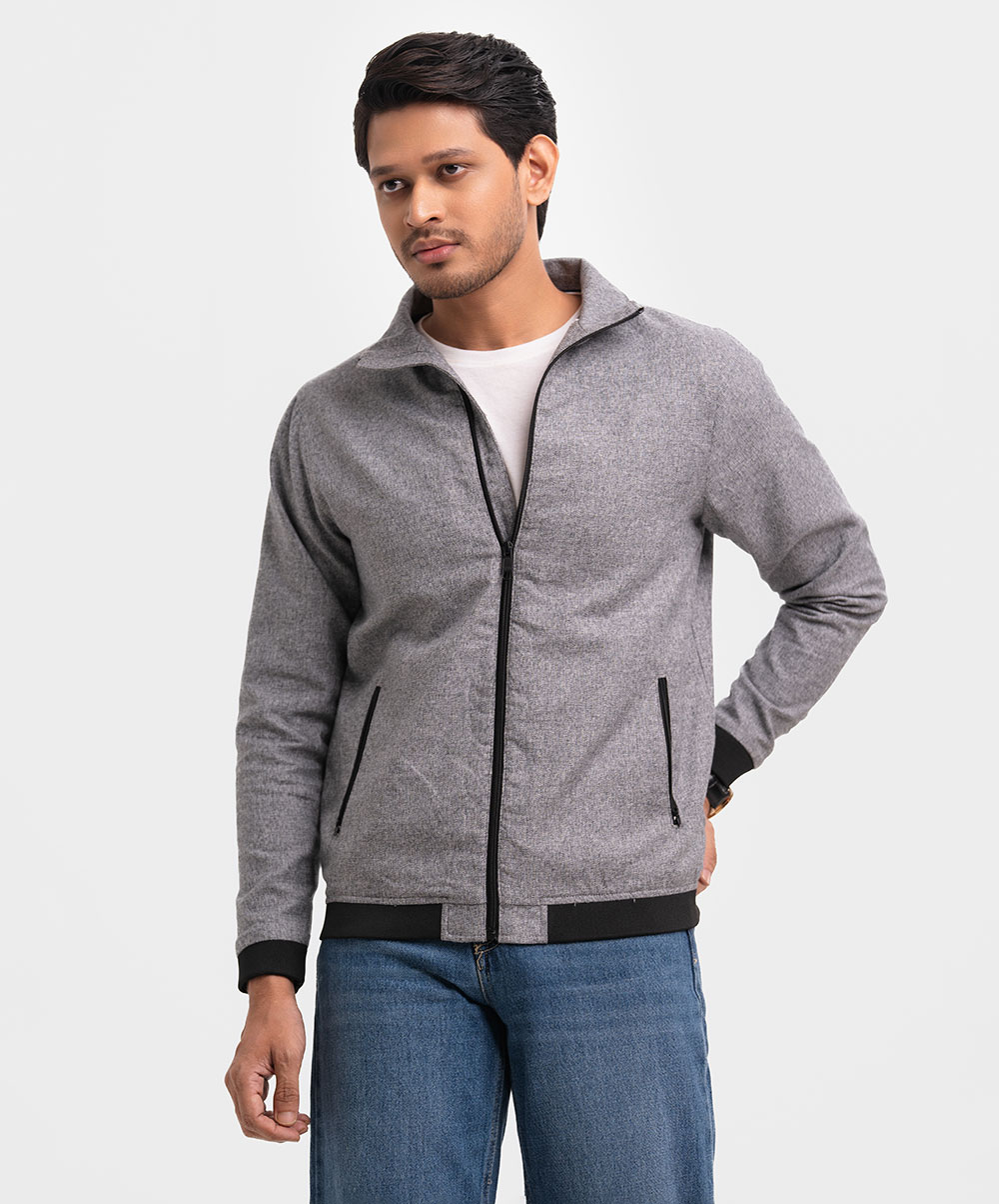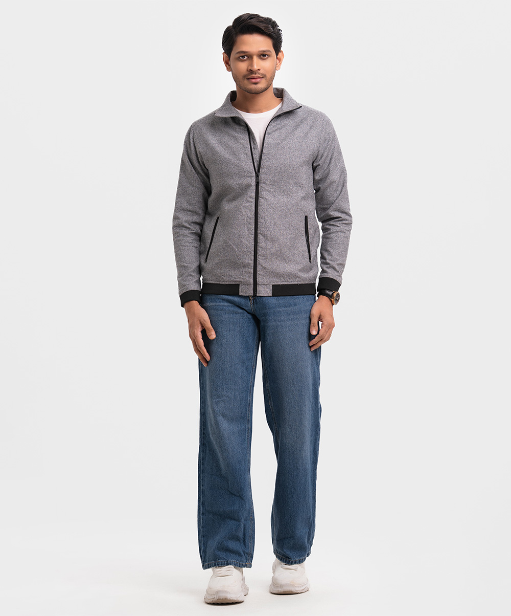 Men’s biker jacket in cotton-blend fabric. Classic collar, zip-up at front, long sleeves. Zip side pockets.