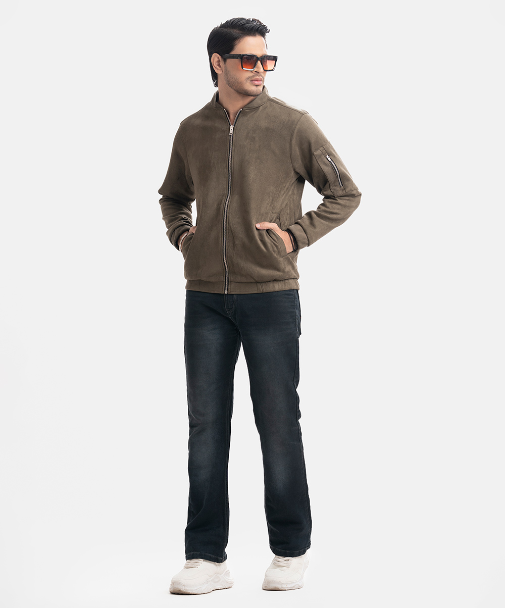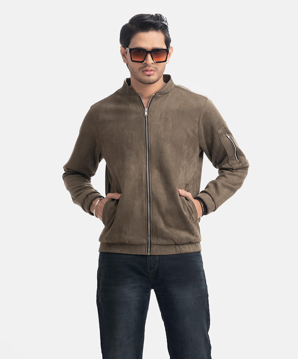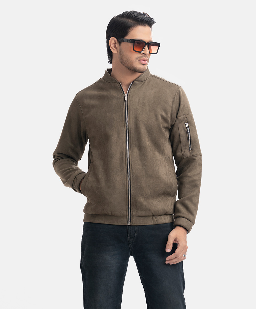 Men’s bomber jacket in cotton-blend fabric. Stand-up collar, zip at front & diagonal welt side pockets. Quilted lining.