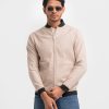 Men’s bomber jacket in cotton-blend fabric. Ribbed stand-up collar, zip at front & zip welt side pockets. Ribbing at cuffs and hem. Quilted lining.