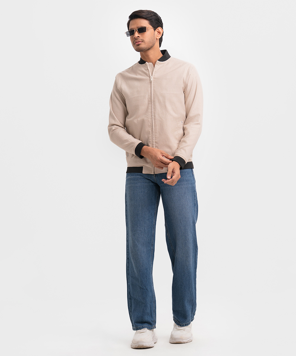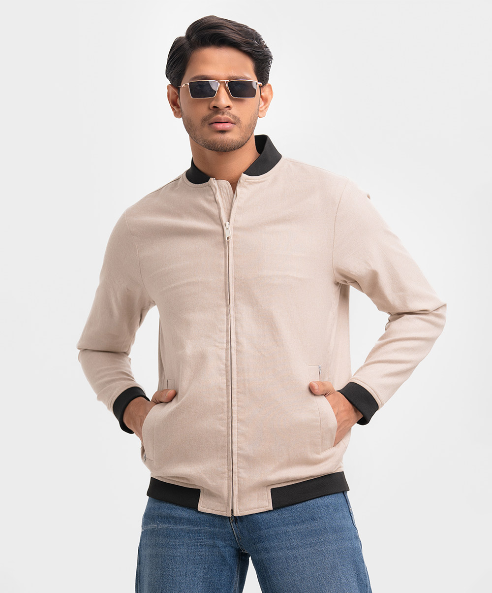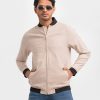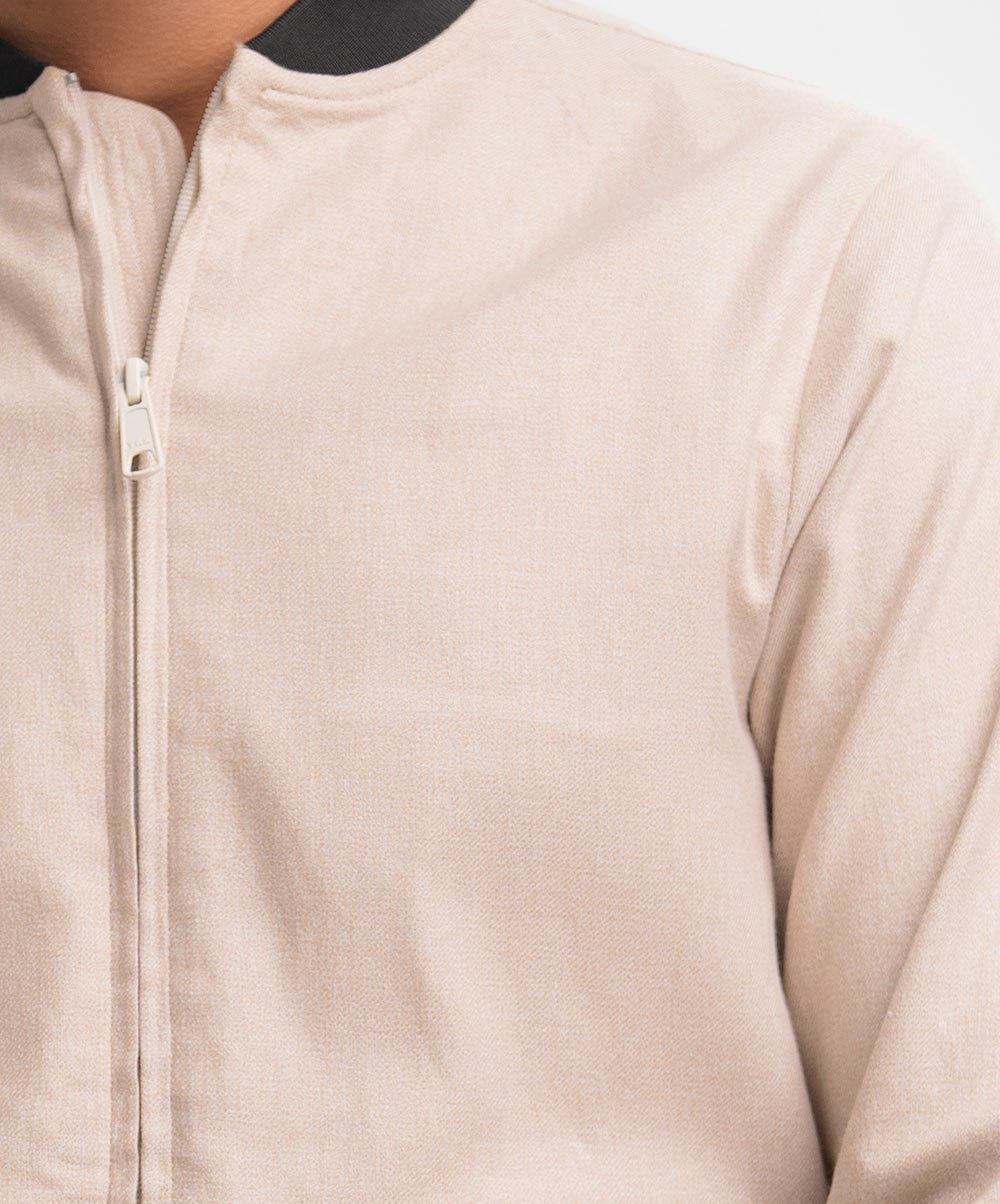 Off-white Cotton Blended Bomber Jacket