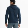 Denim Jacket with adjustable hoodie. allover printed with light wash and ziper front. kangaroo pocket.