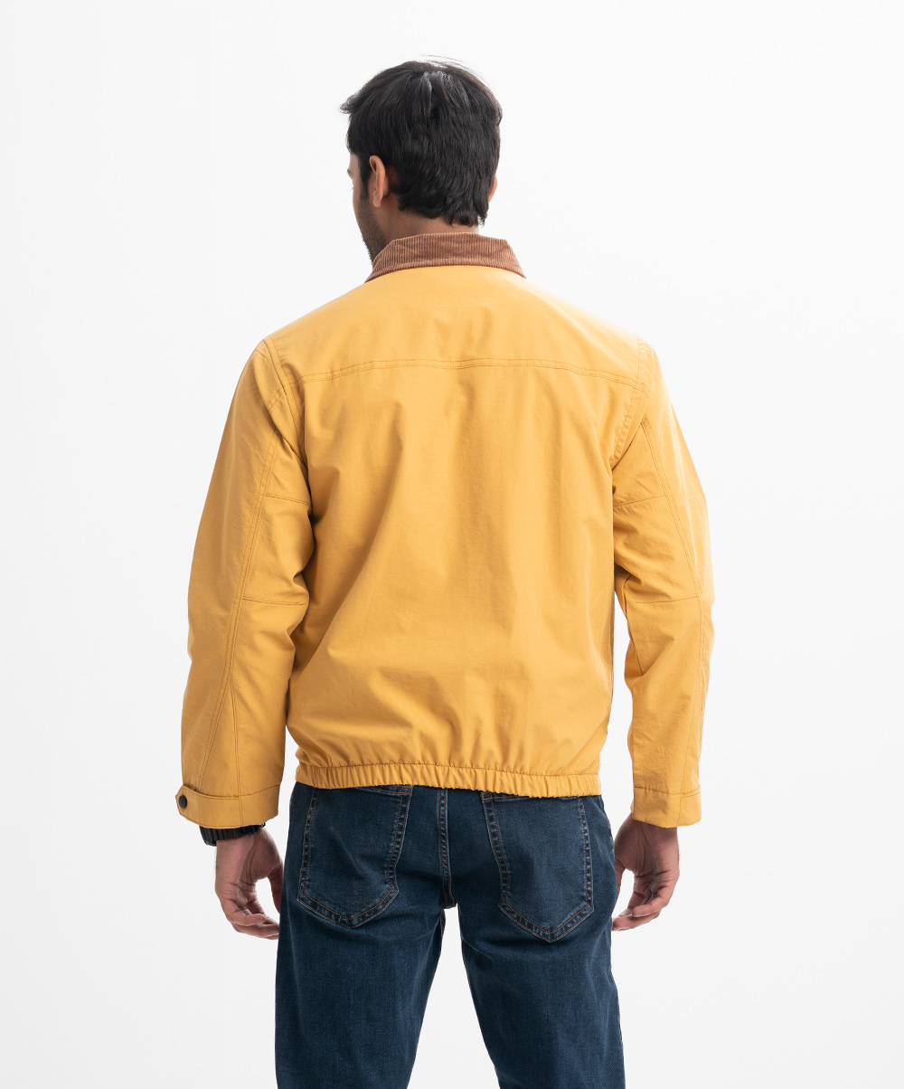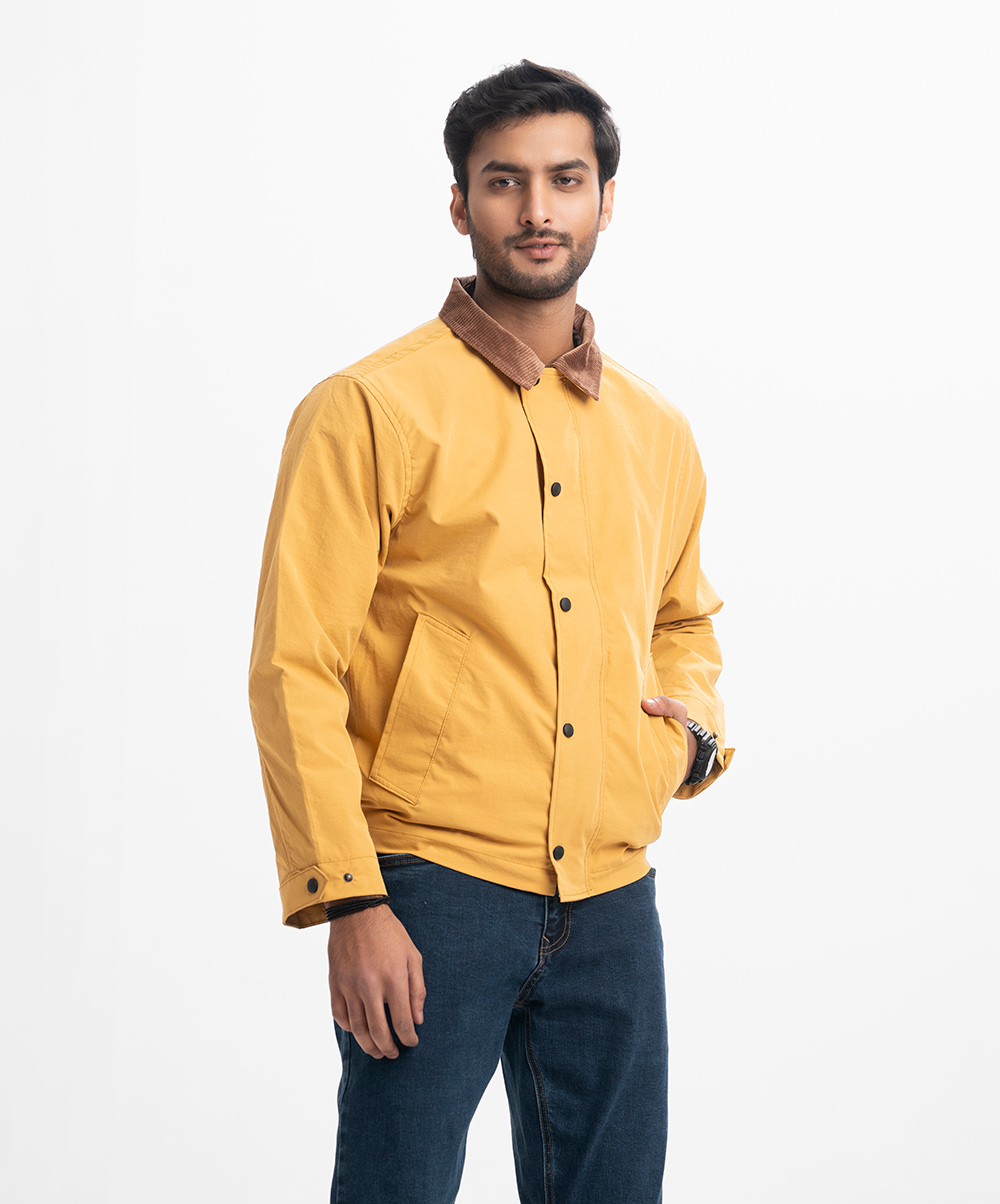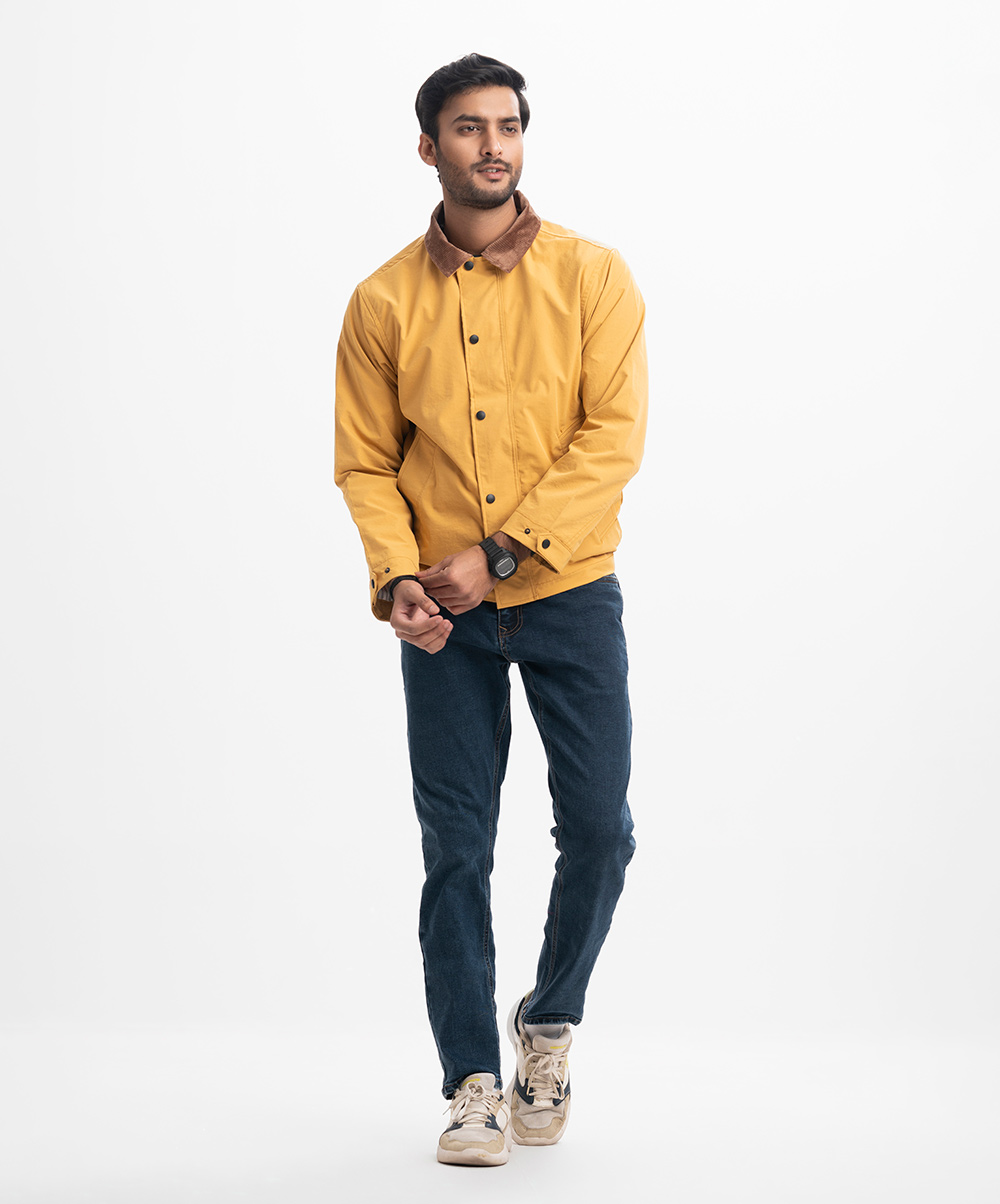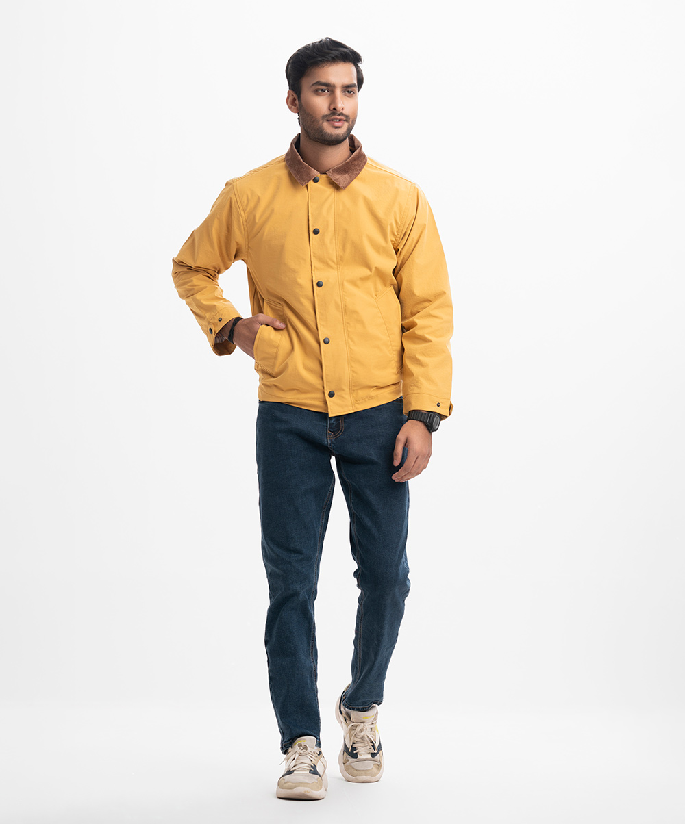 Yellow Blended Concealed Buttoned Casual Jacket