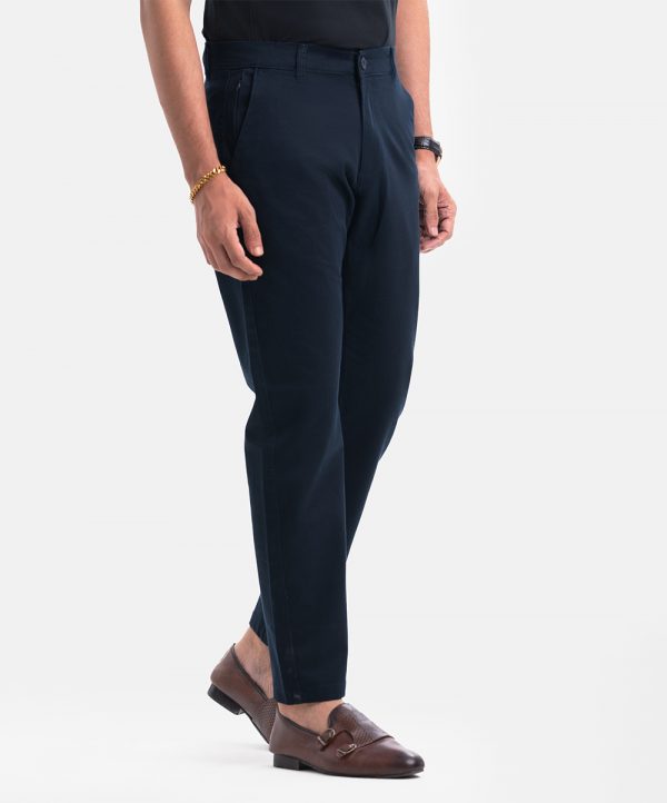 Four-pocket chinos pant in stretchable cotton fabric. Slim fit, clean waistline with hidden zipper fly.