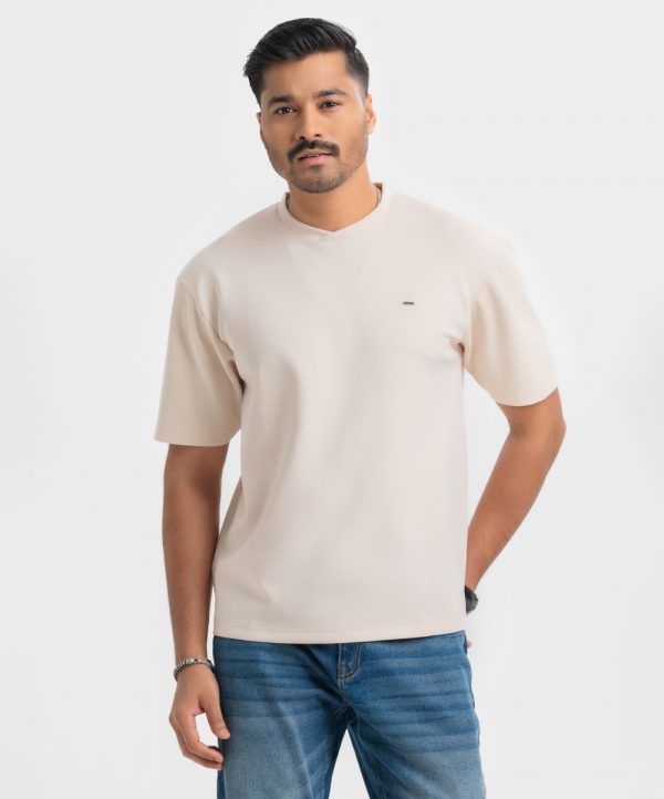 Soft cotton interlock knit drop shoulder t-shirt. Short-sleeved.