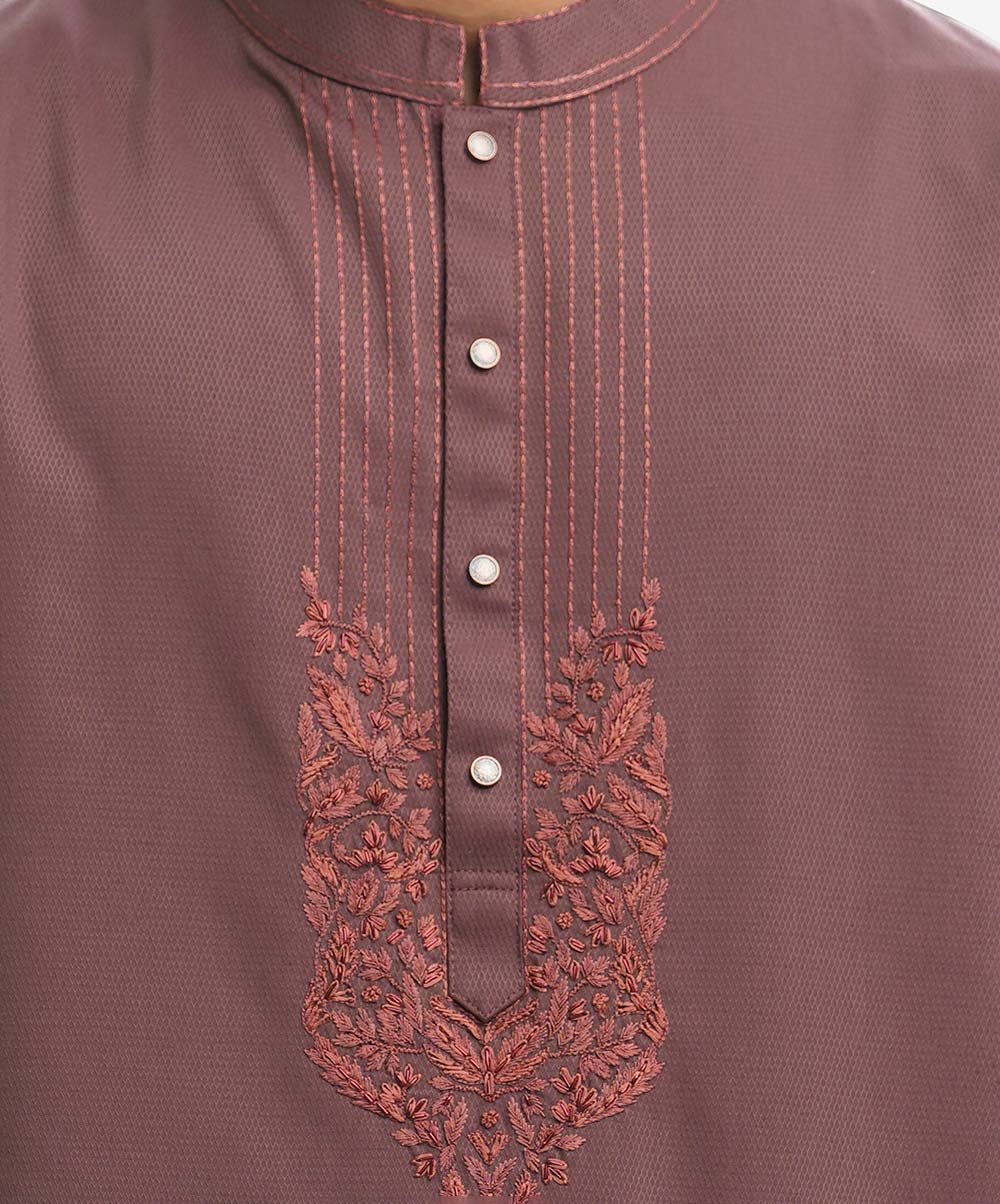 Peach Brown Jacquard Premium Panjabi