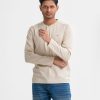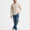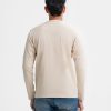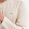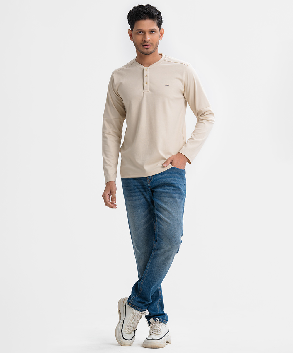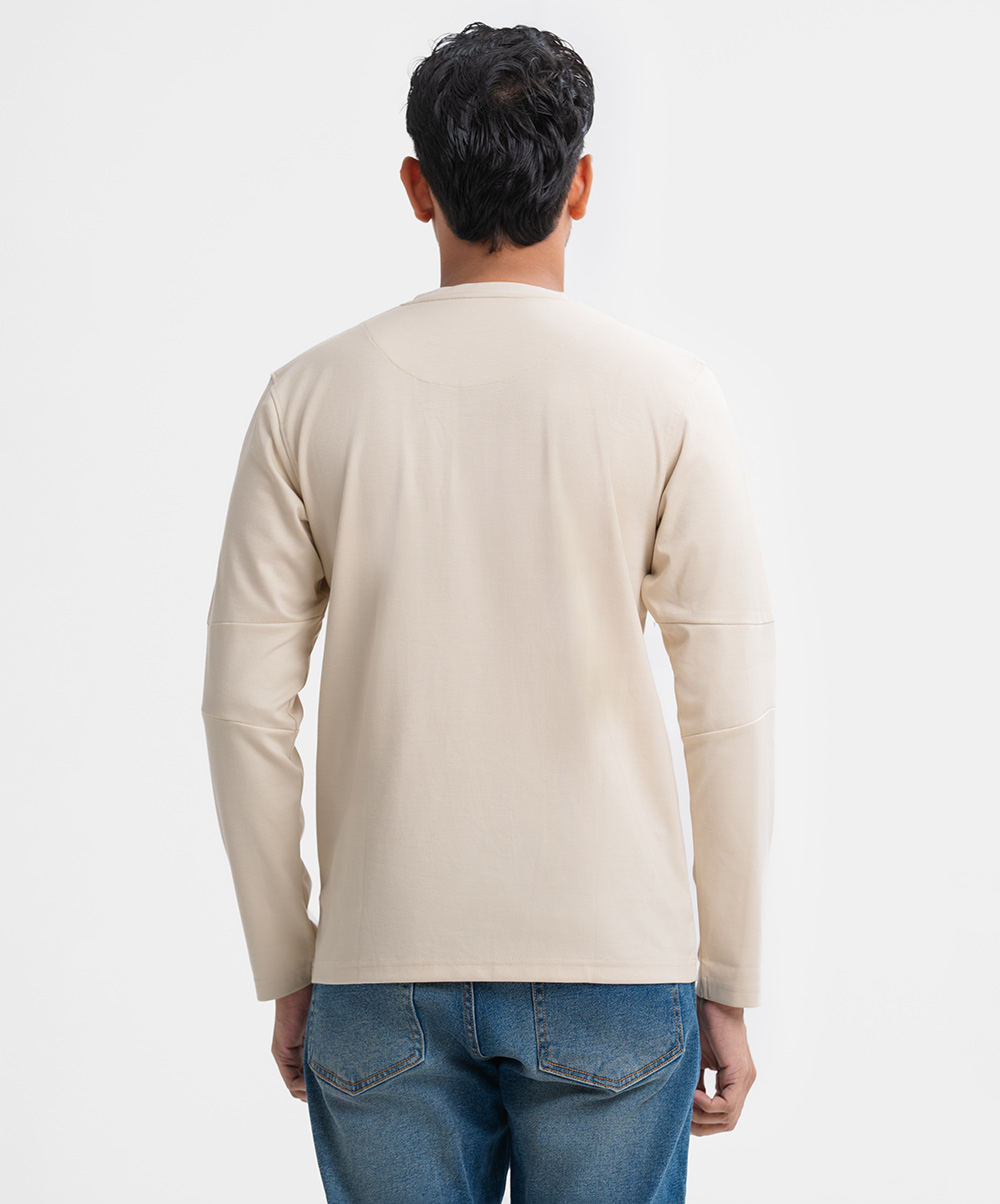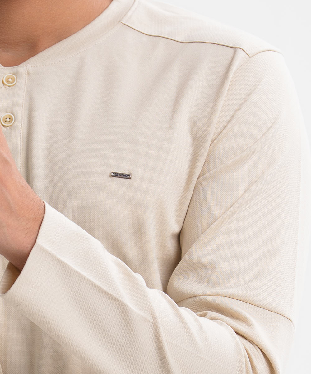 Beige Interlock Knit Long Sleeve Henley T-Shirt