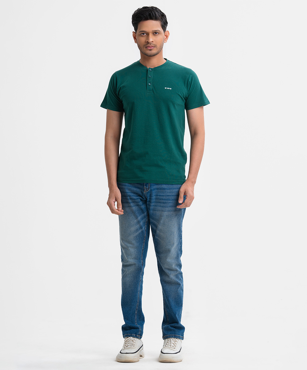 Men’s henley t-shirt in cotton single jersey knit fabric. Henley neck, short sleeves and print on the chest.