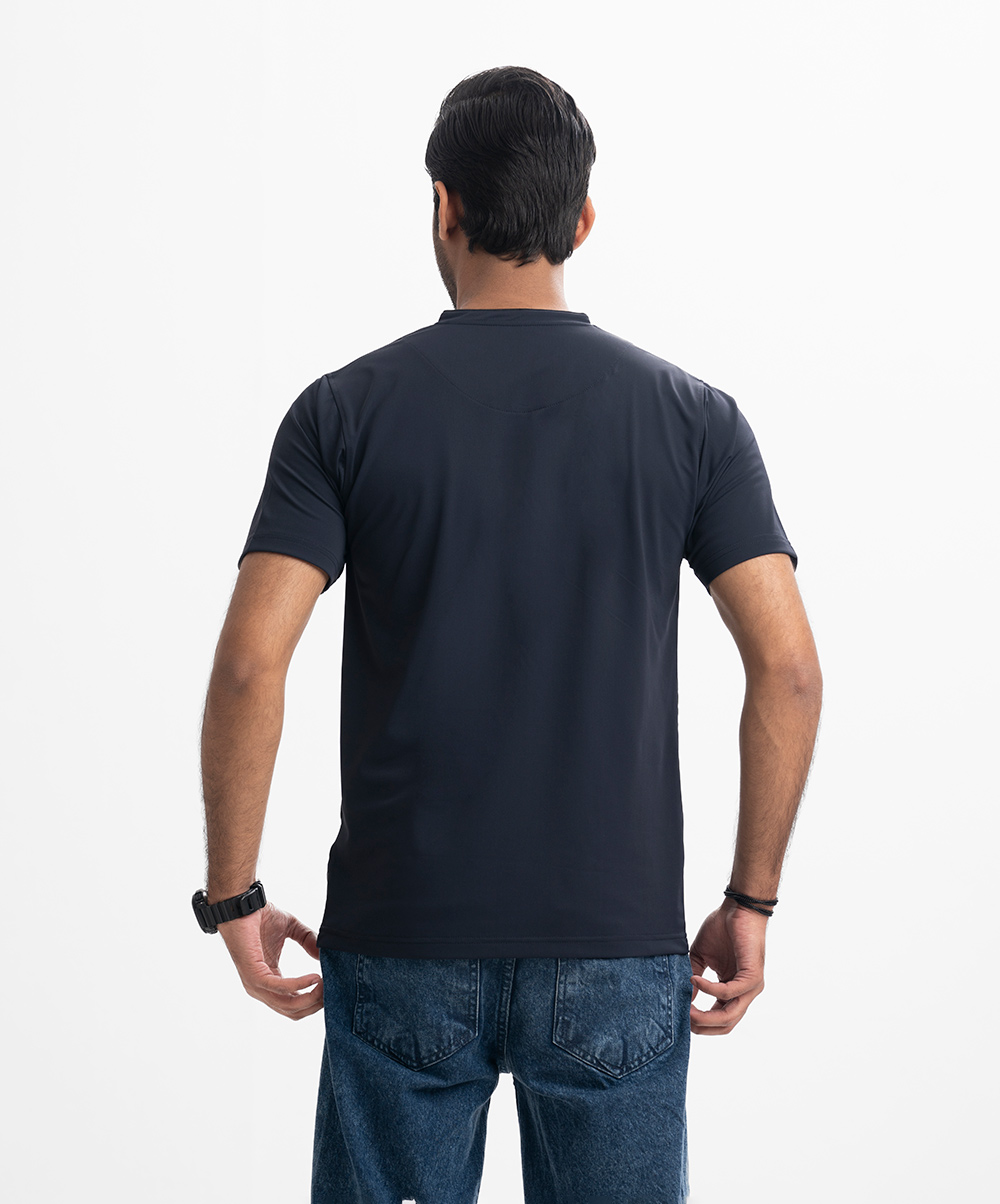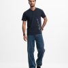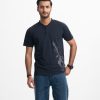 Men’s henley T-shirt in Interlock knit fabric. Rounded scoop neckline with front button fastening and short sleeves. Guitar print detail at front.