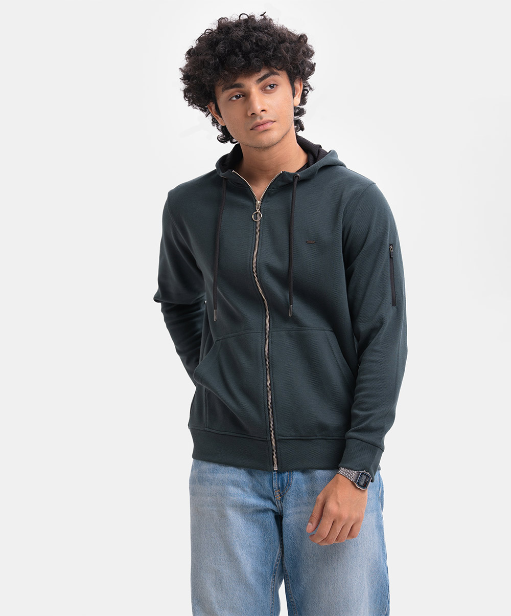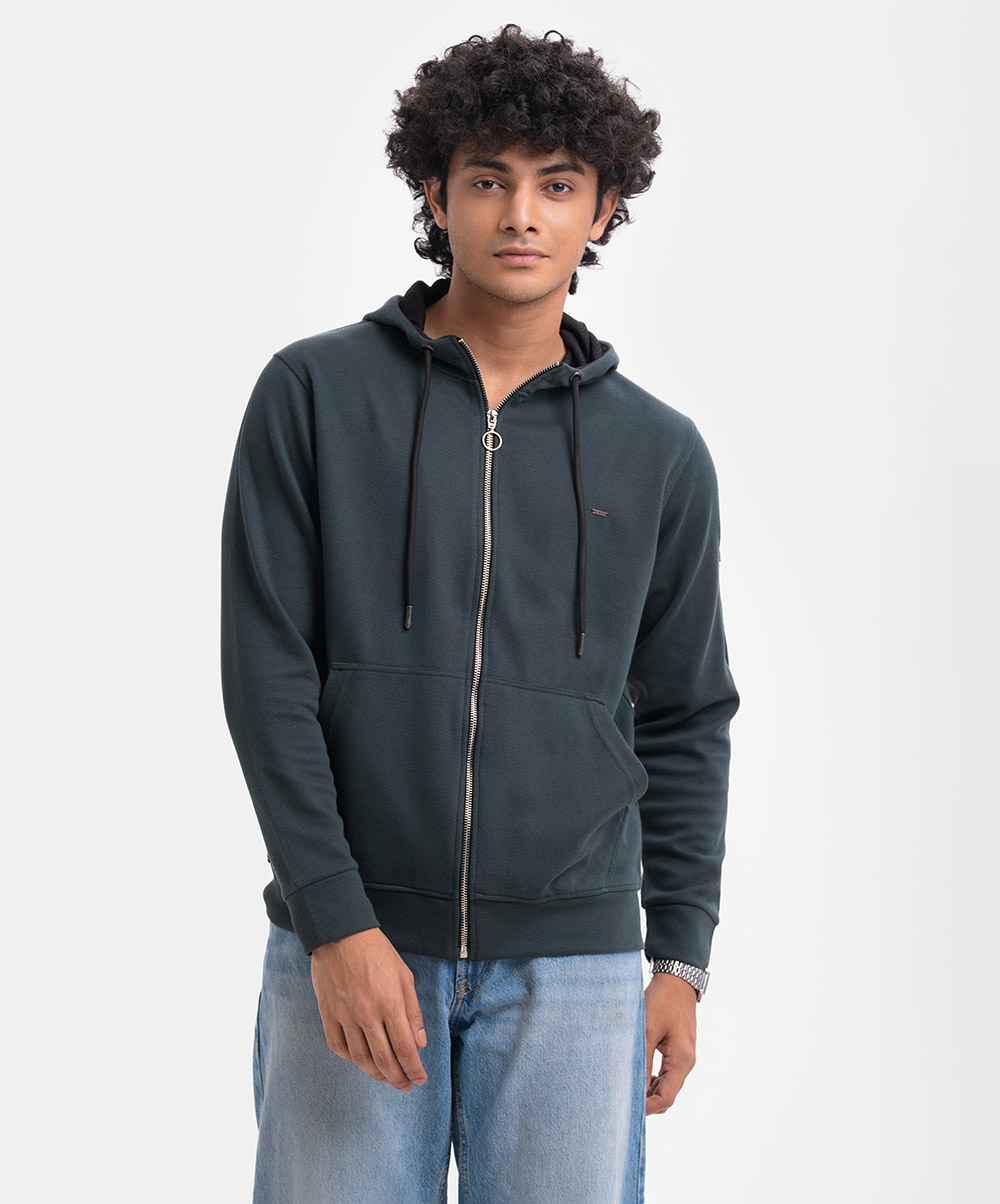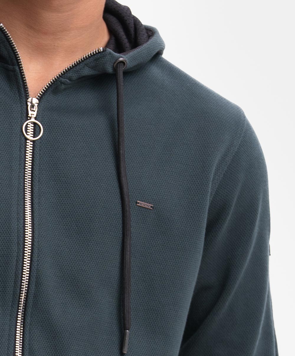 Green Interlock Knit Hoodie Sweatshirt