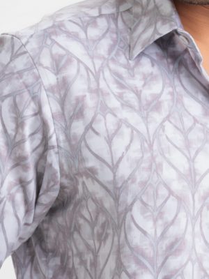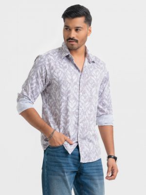 Gray casual shirt in printed Cotton fabric. Designed with a classic collar and long sleeves with adjustable buttons at the cuffs. Slim fit.