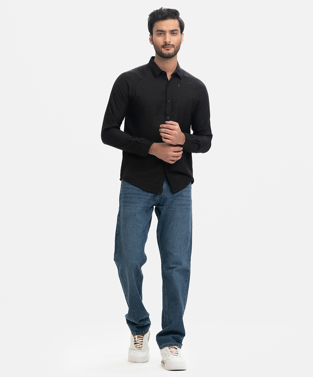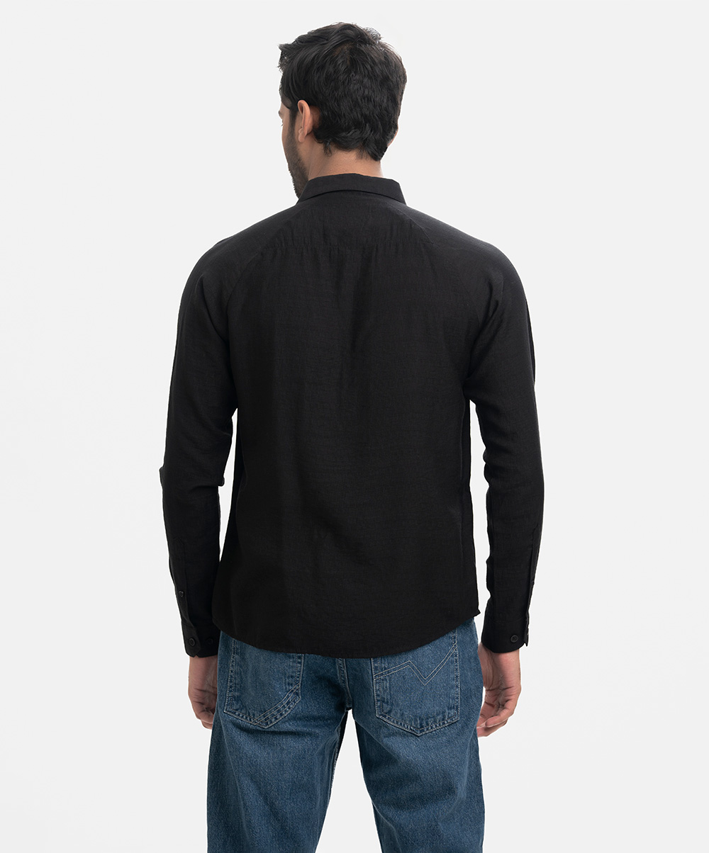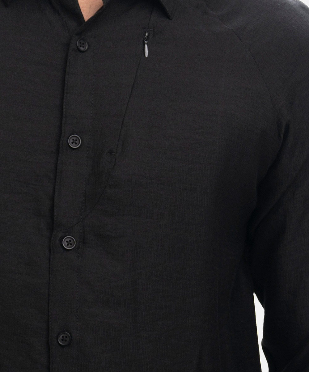 Men’s long-sleeved casual shirt in cotton fabric. Classic collar, full sleeves and a show zipper pocket design at front.