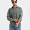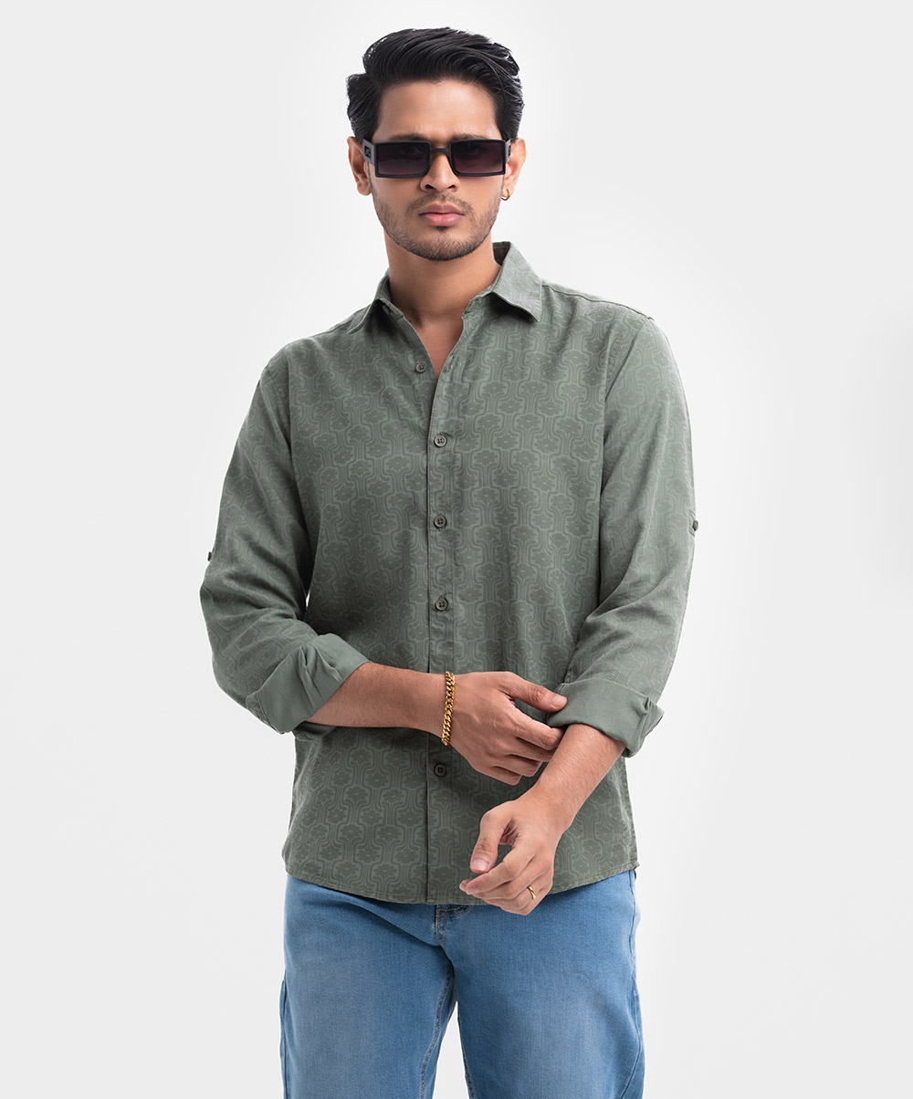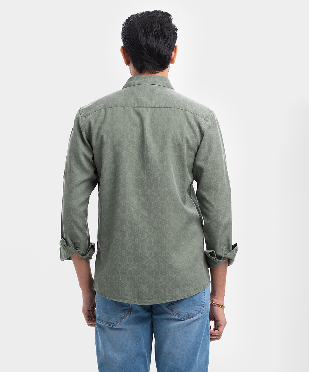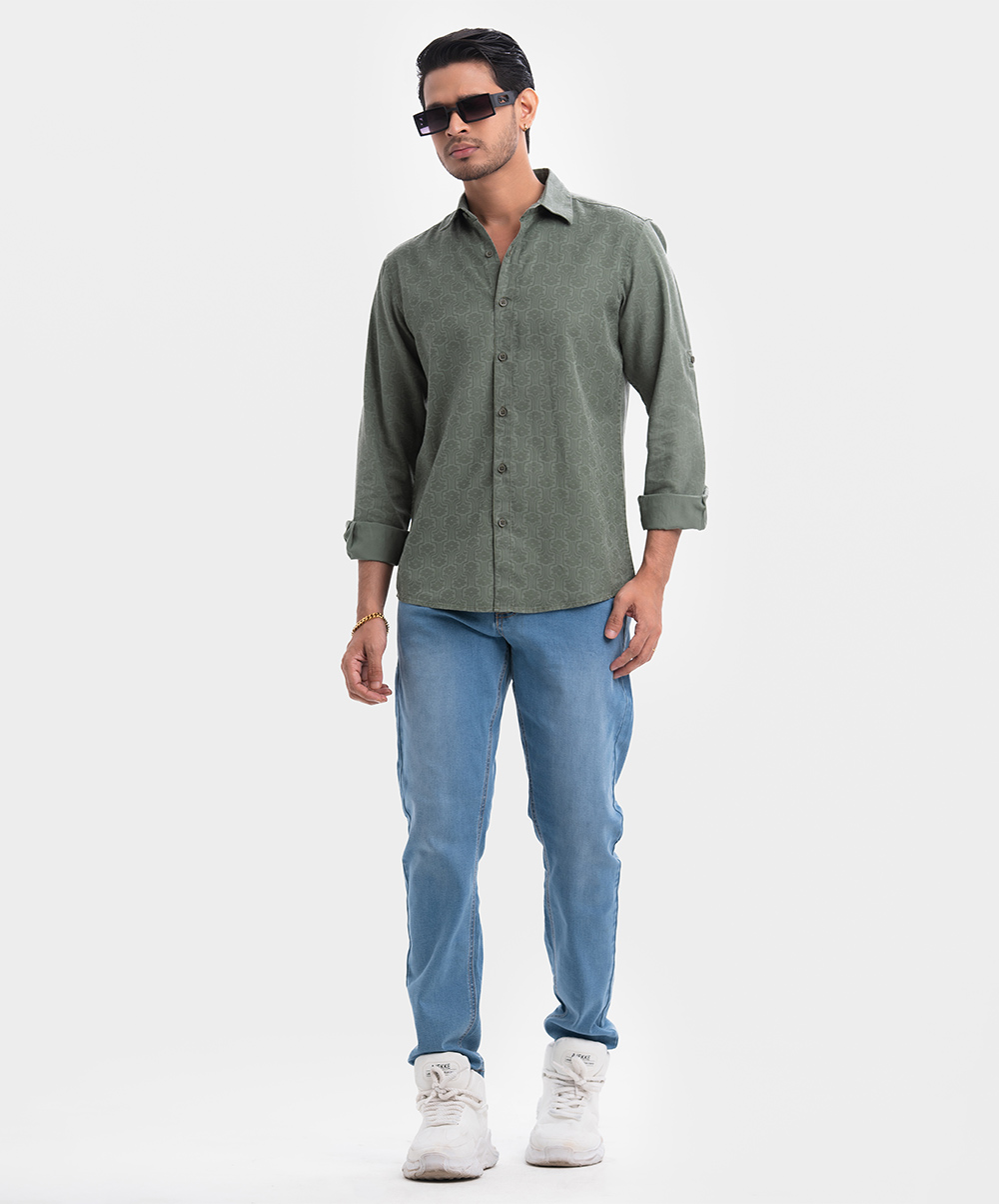 Olive Green Cotton Long Sleeve Casual Shirt