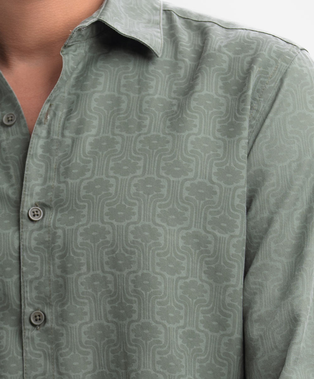 Men’s printed casual shirt in cotton fabric. Classic collar, cuff sleeves. Buttons fastening at front and hidden buttons.