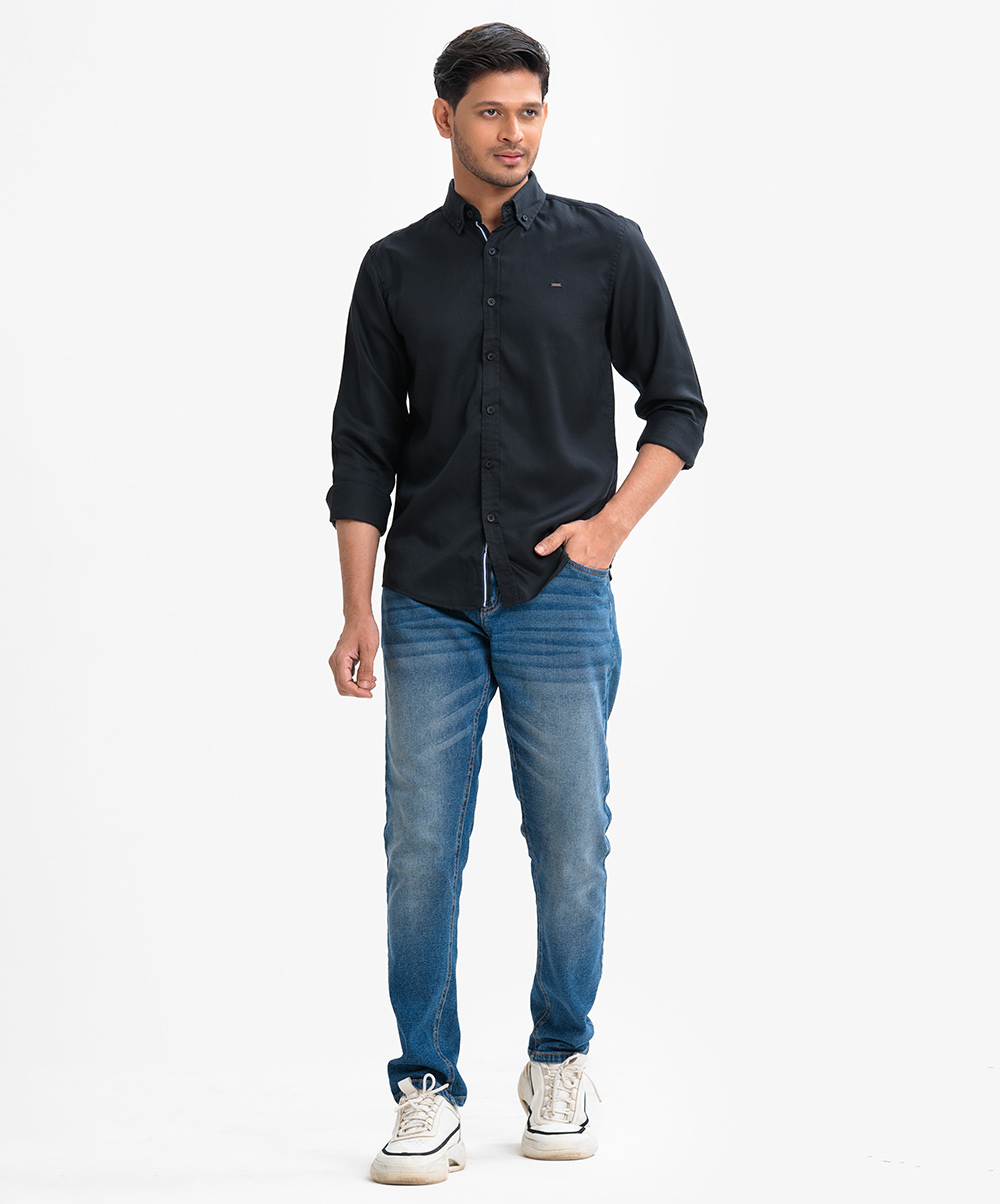 Men’s long-sleeve casual shirt in cotton fabric. Classic collar, button fastening at the front. Adjustable cuffs.