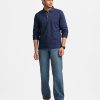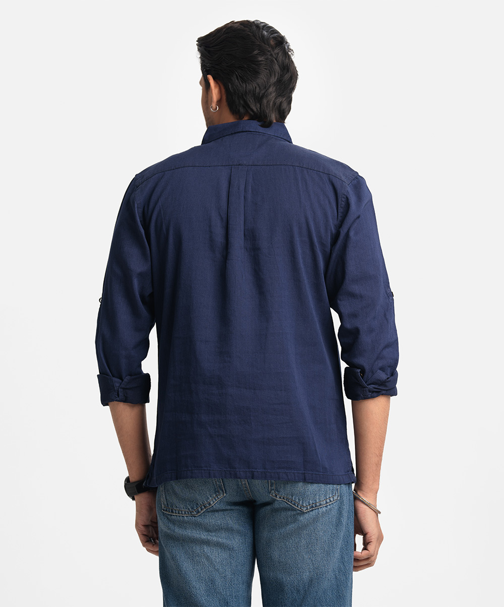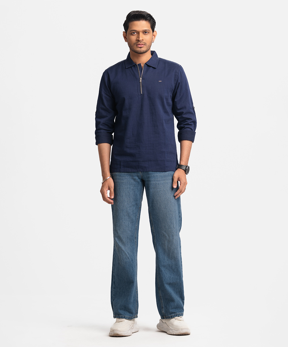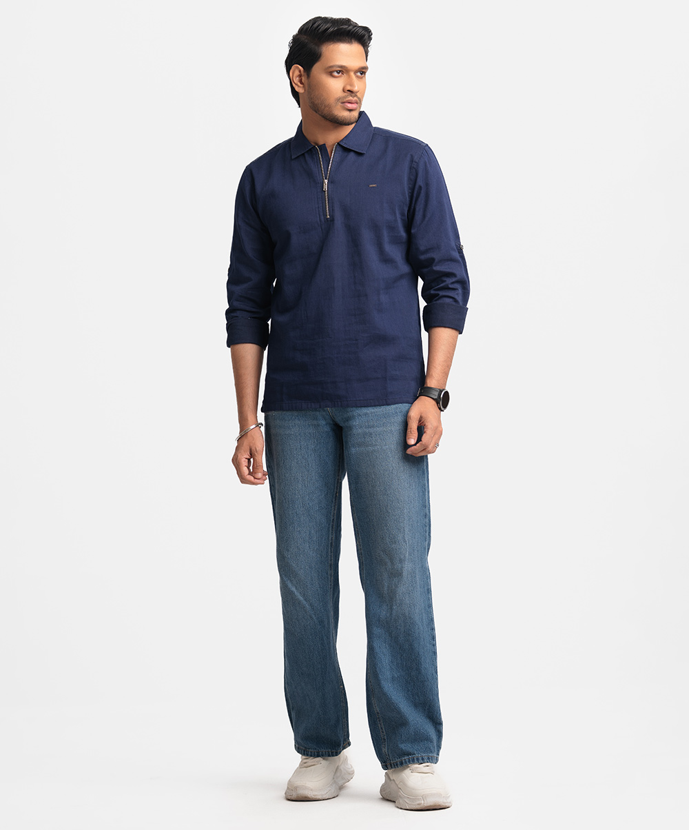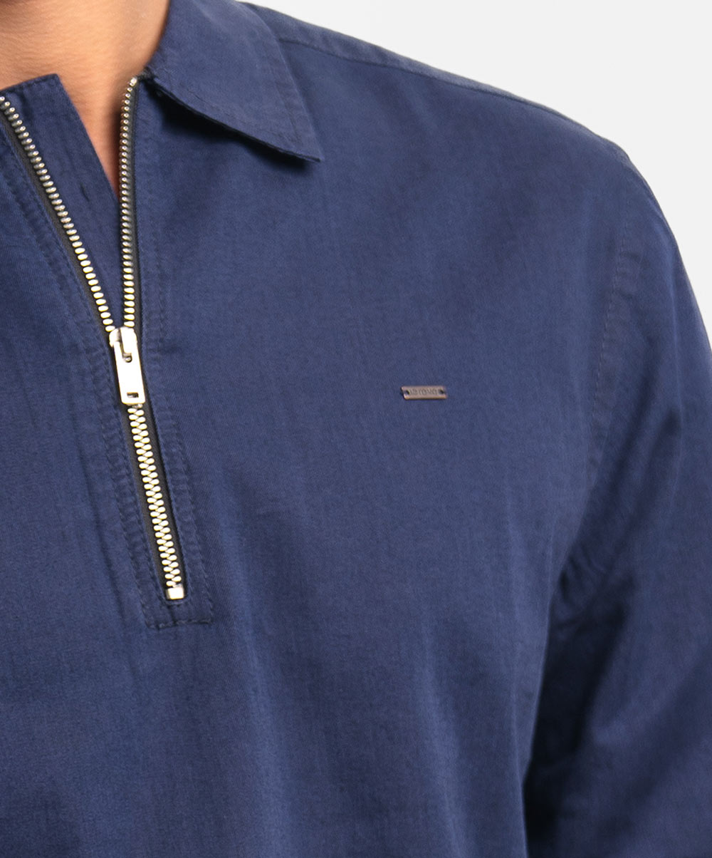 Long-sleeved casual shirt in soft denim fabric. Classic collar, half zip opening.