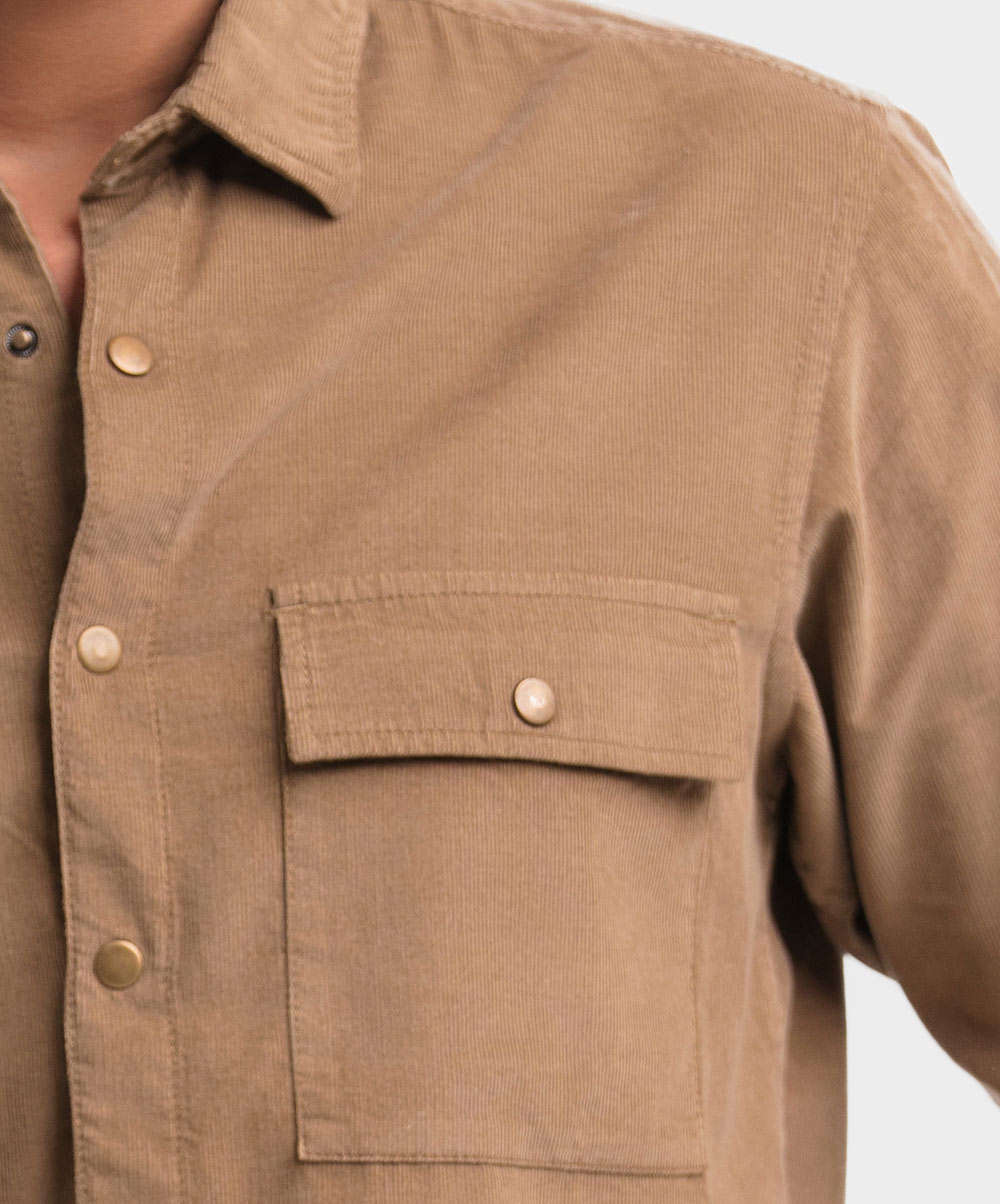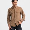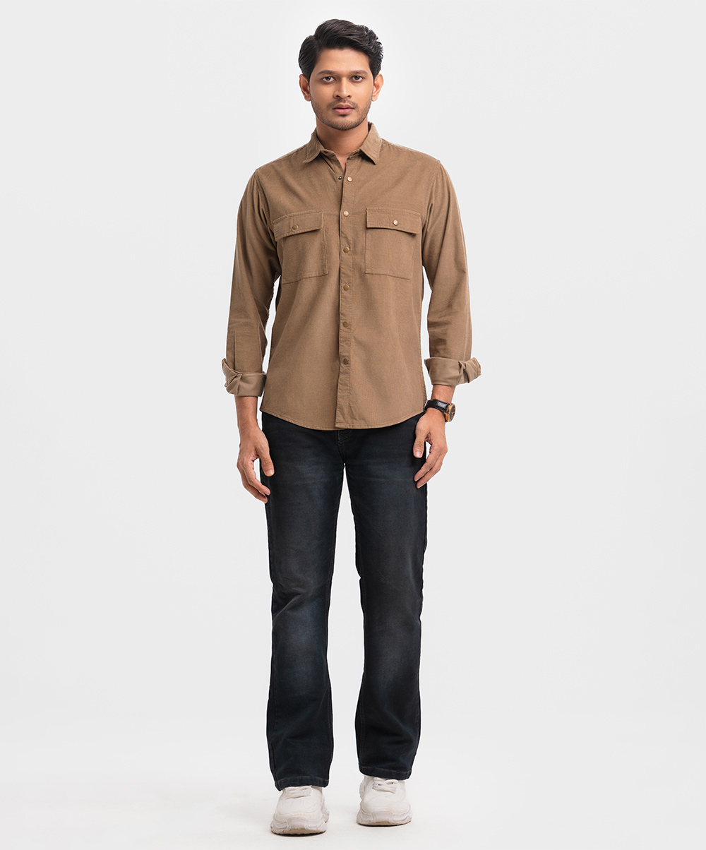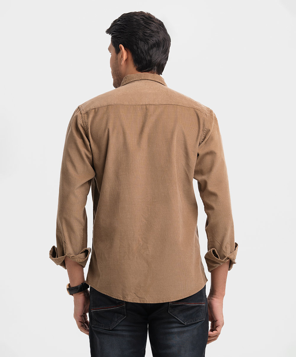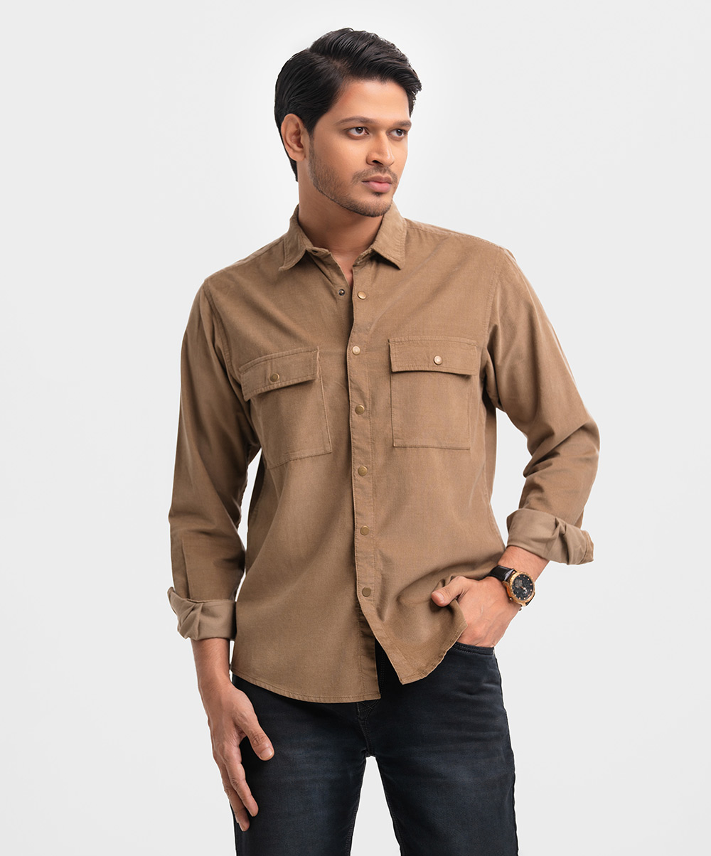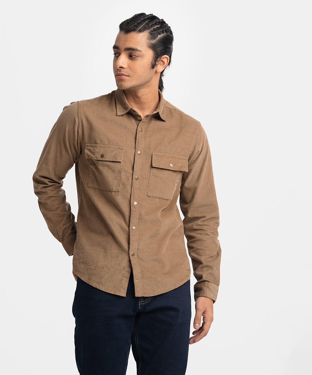 Brown Corduroy Long Sleeve Casual Shirt