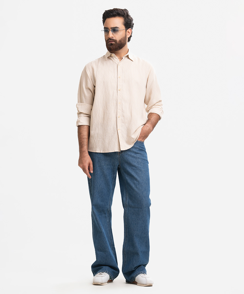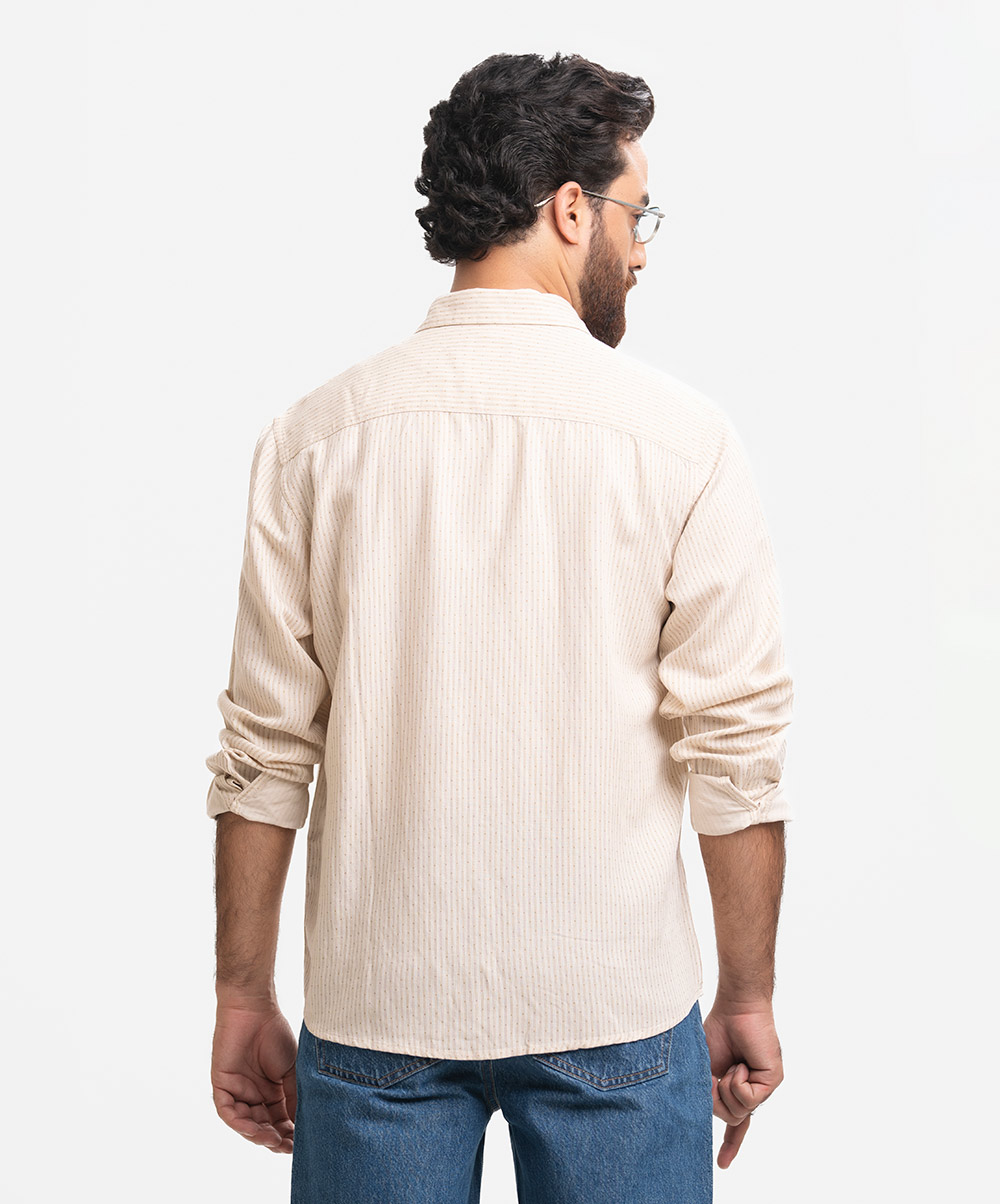 Off-white Slab Cotton Long Sleeve Casual Shirt