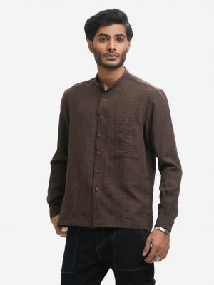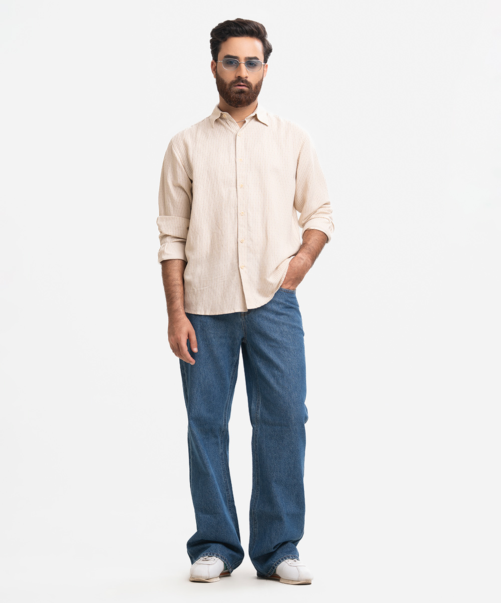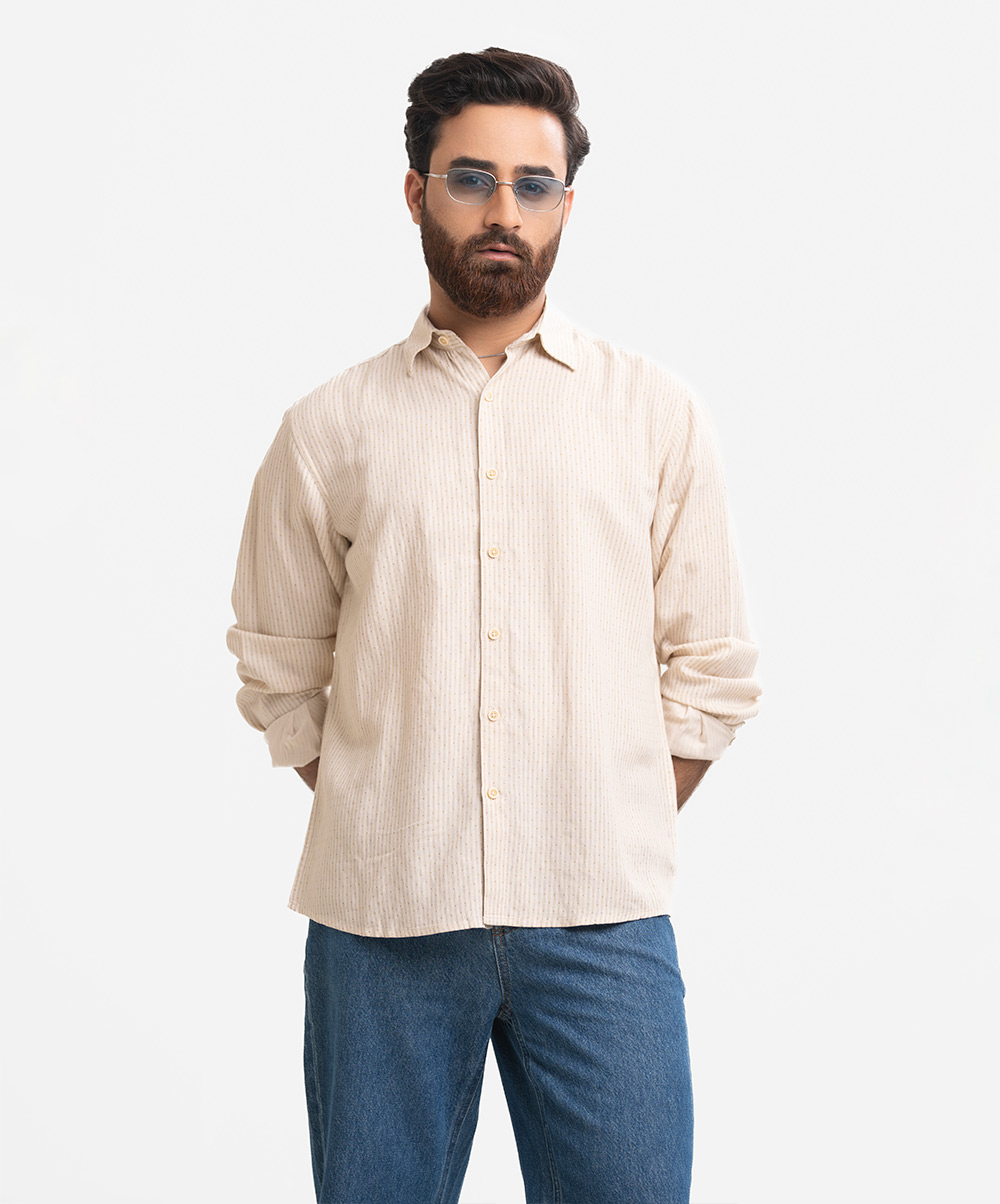 Long sleeve casual shirt in slab cotton fabric with a classic collar and adjustable cuffs.