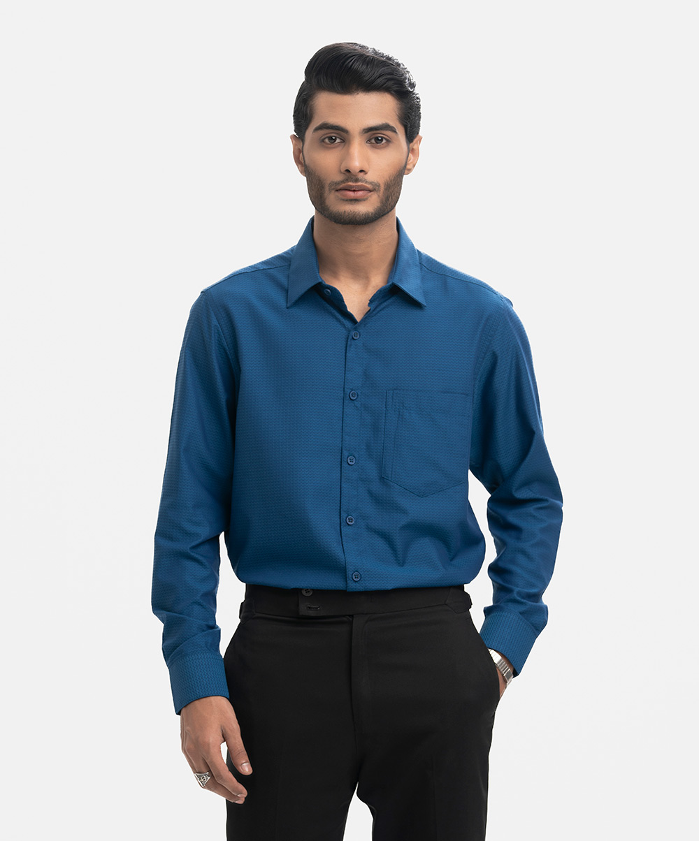 Blue Cotton Long Sleeve Formal Shirt