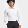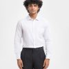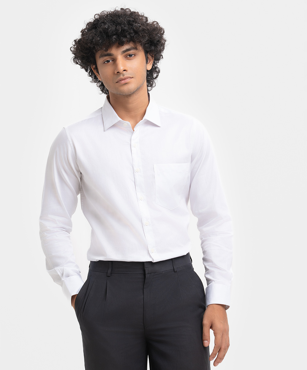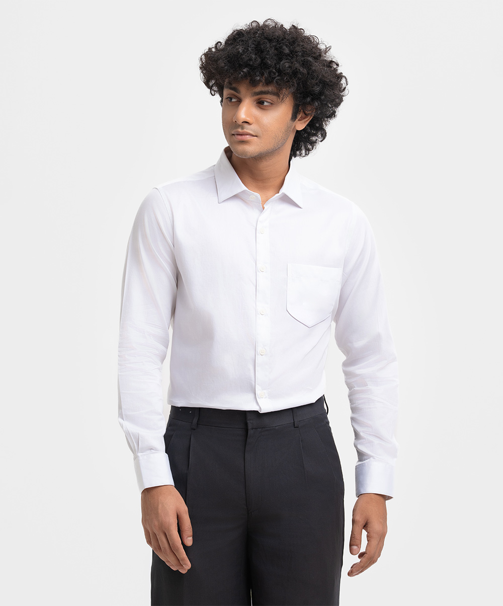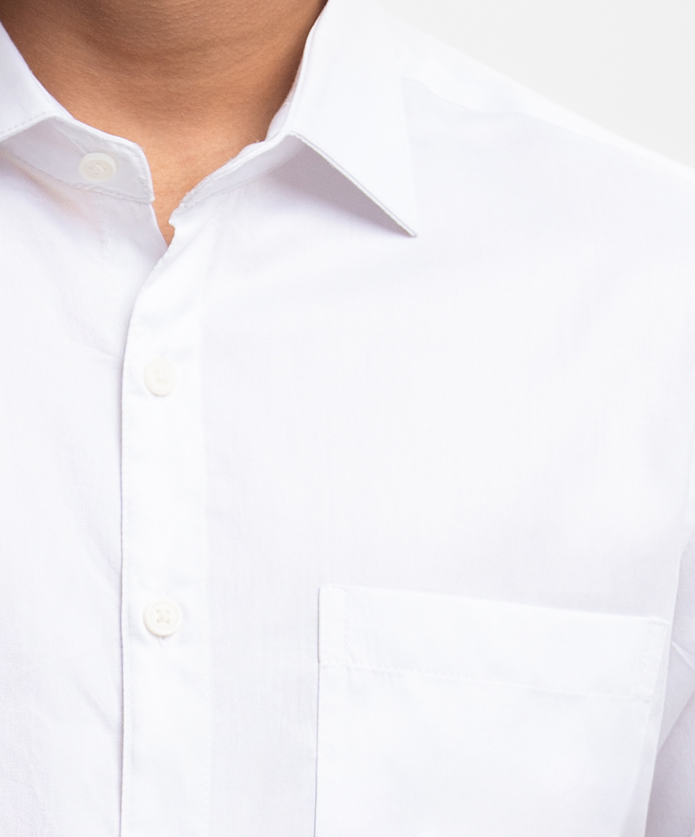 Long-sleeved single color formal shirt in cotton fabric. Classic collar with a chest pocket.