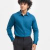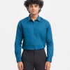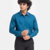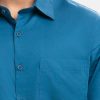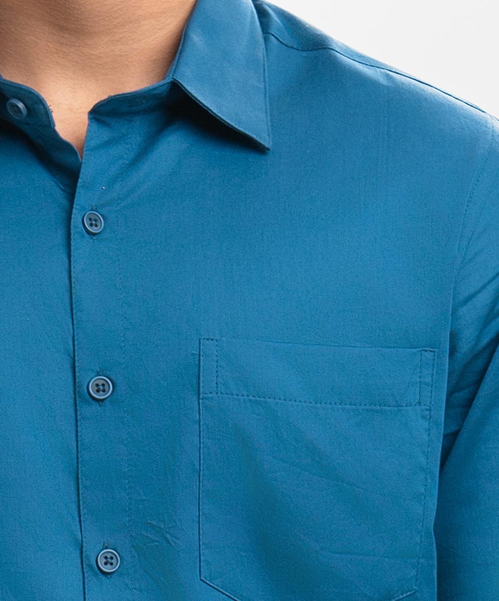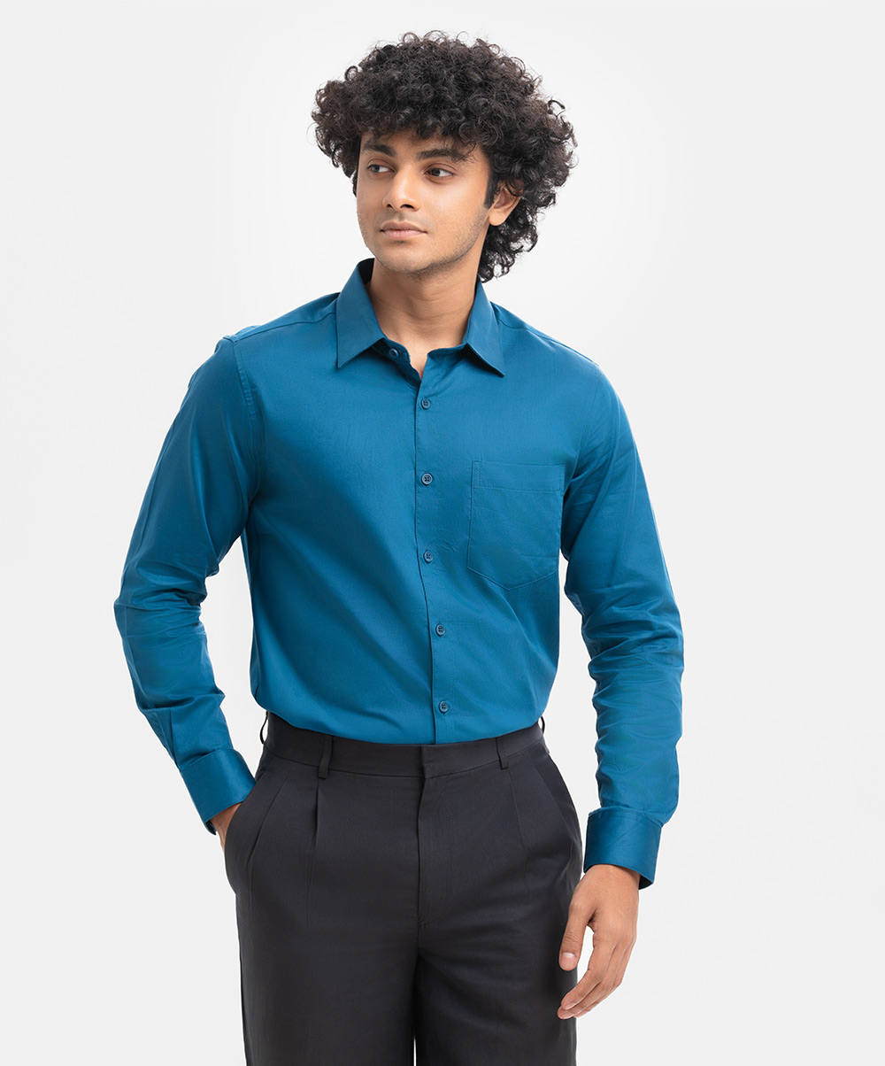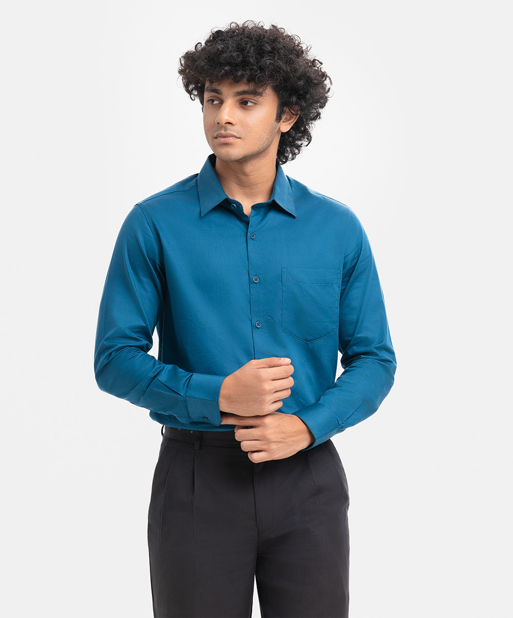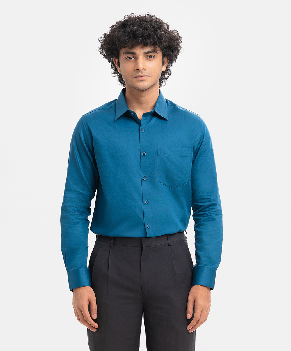 Long-sleeved single color formal shirt in cotton fabric. Classic collar with a chest pocket.