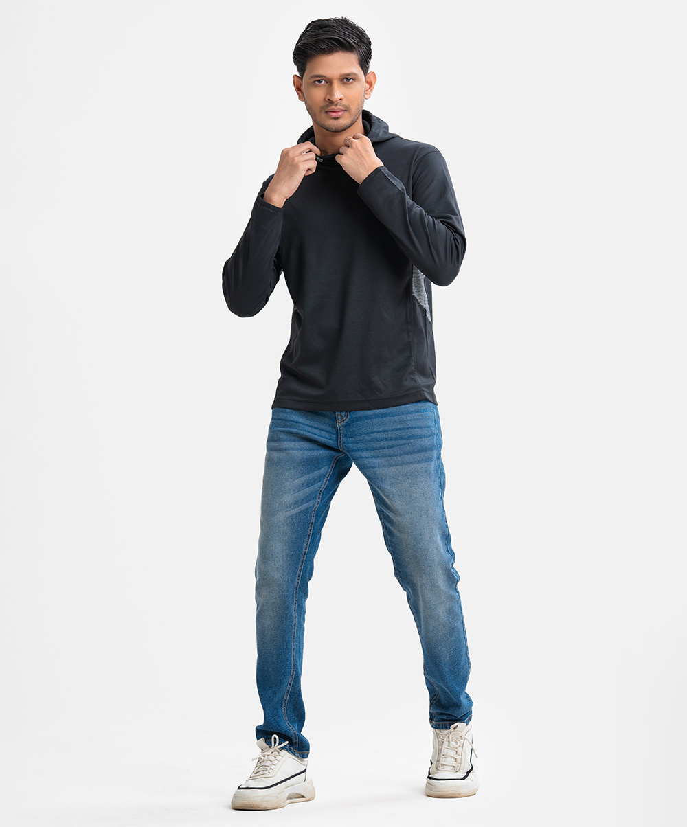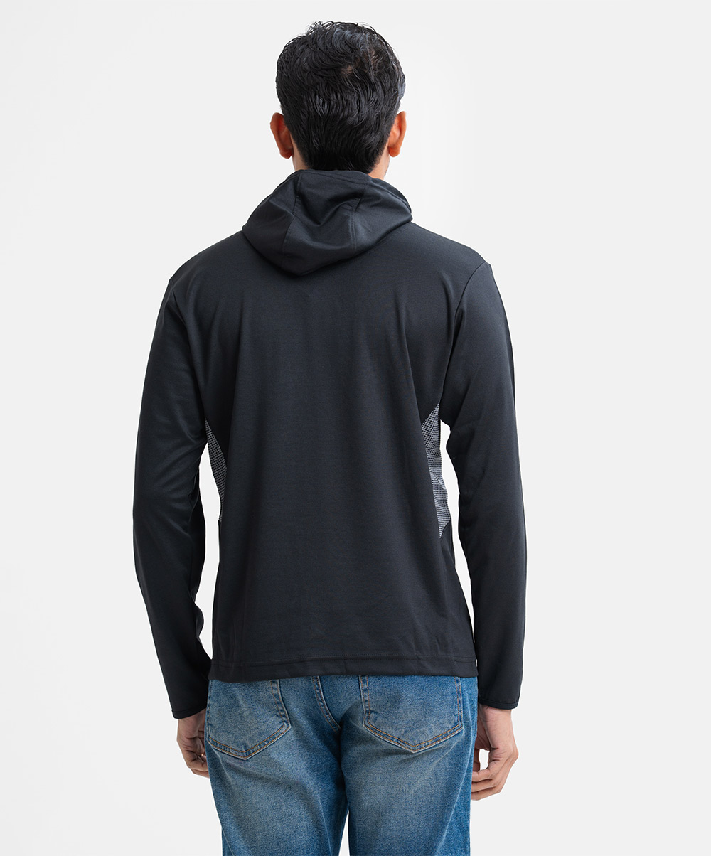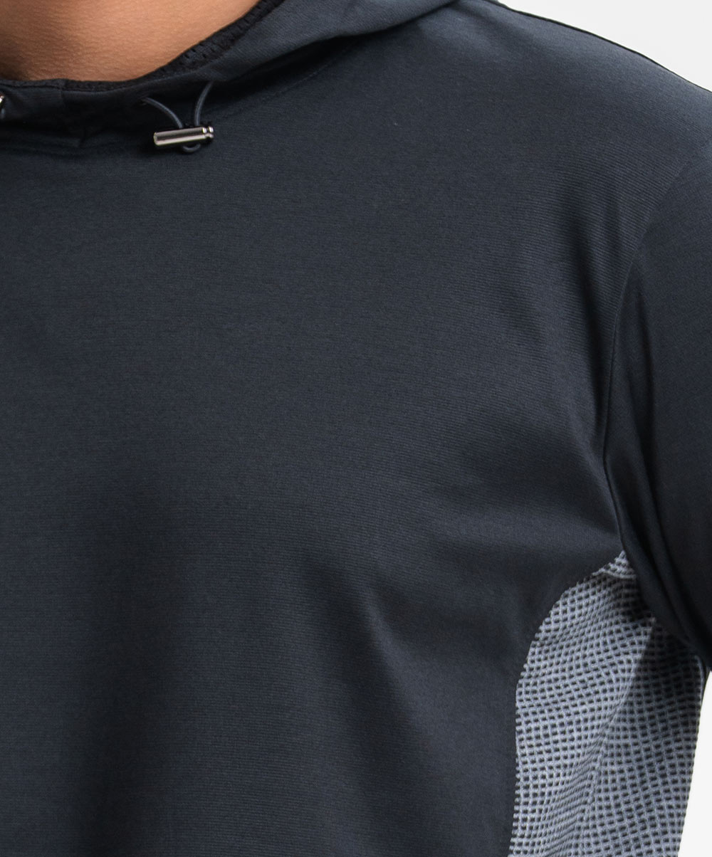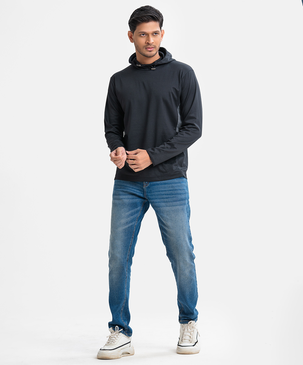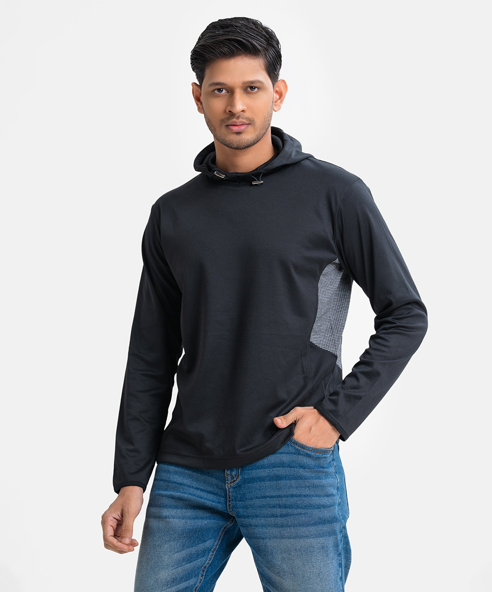Black Interlock Knit Long Sleeve Hoodie T-Shirt