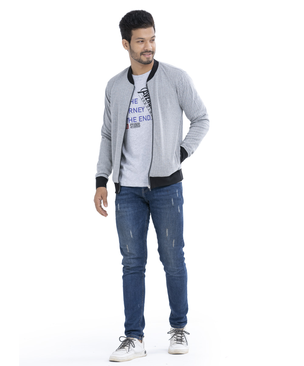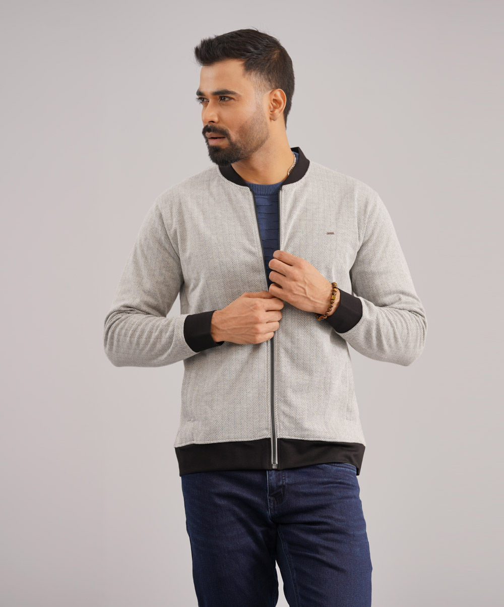 Zipthrow texture Sweat Shirt in Cotton Jacquard fabric.