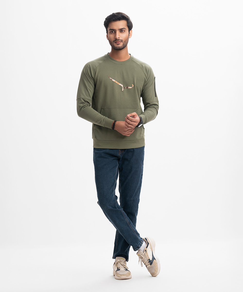 Men’s winter sweatshirt in cotton French terry fabric. Full sleeves, crew ribbed neck. Le Reve bird print at front.