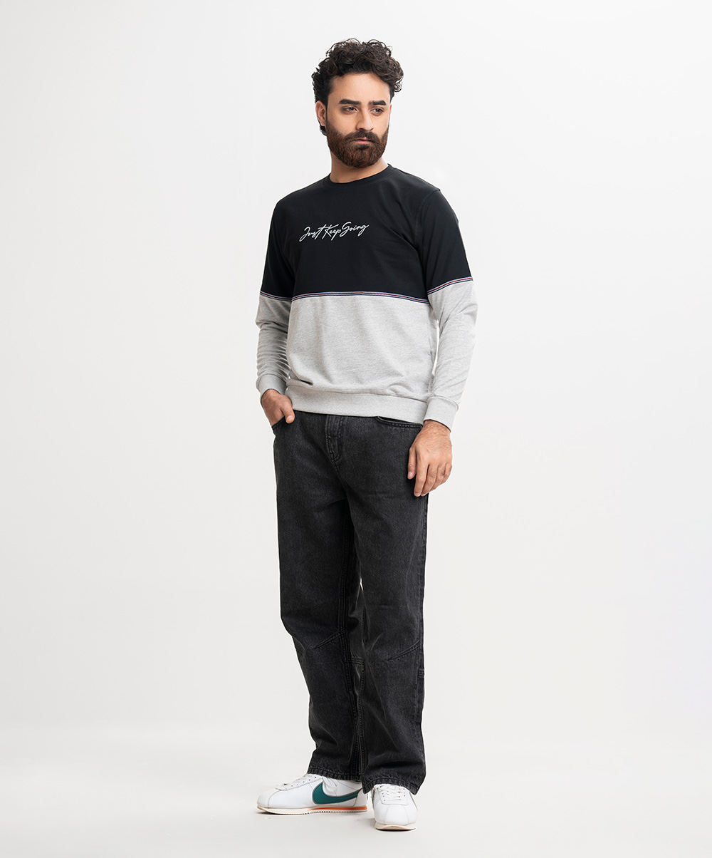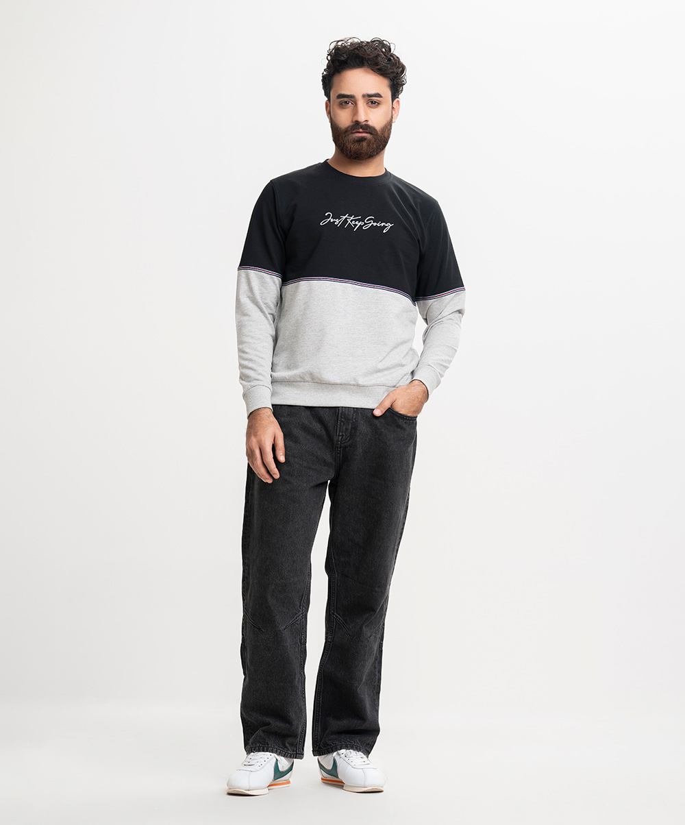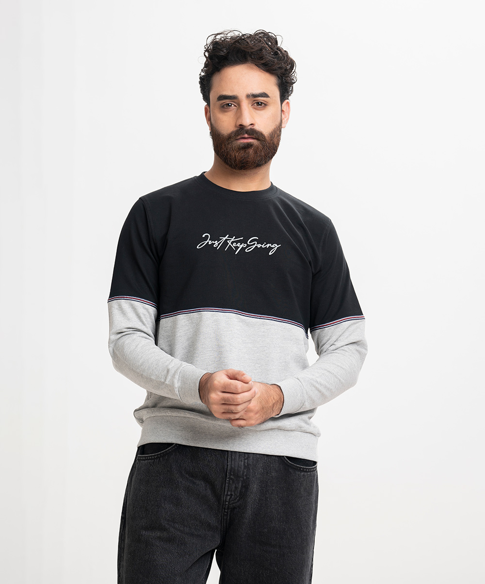 Men’s winter sweatshirt in cotton French terry fabric. Full sleeves, crew ribbed neck. Typographic print & twill tape at front.