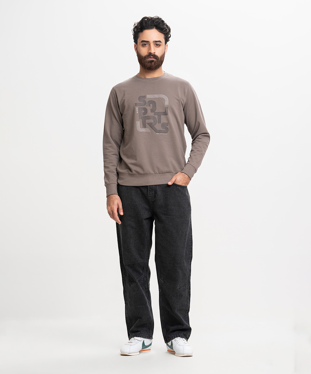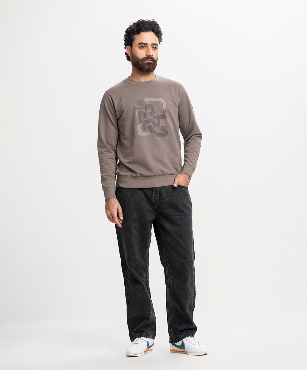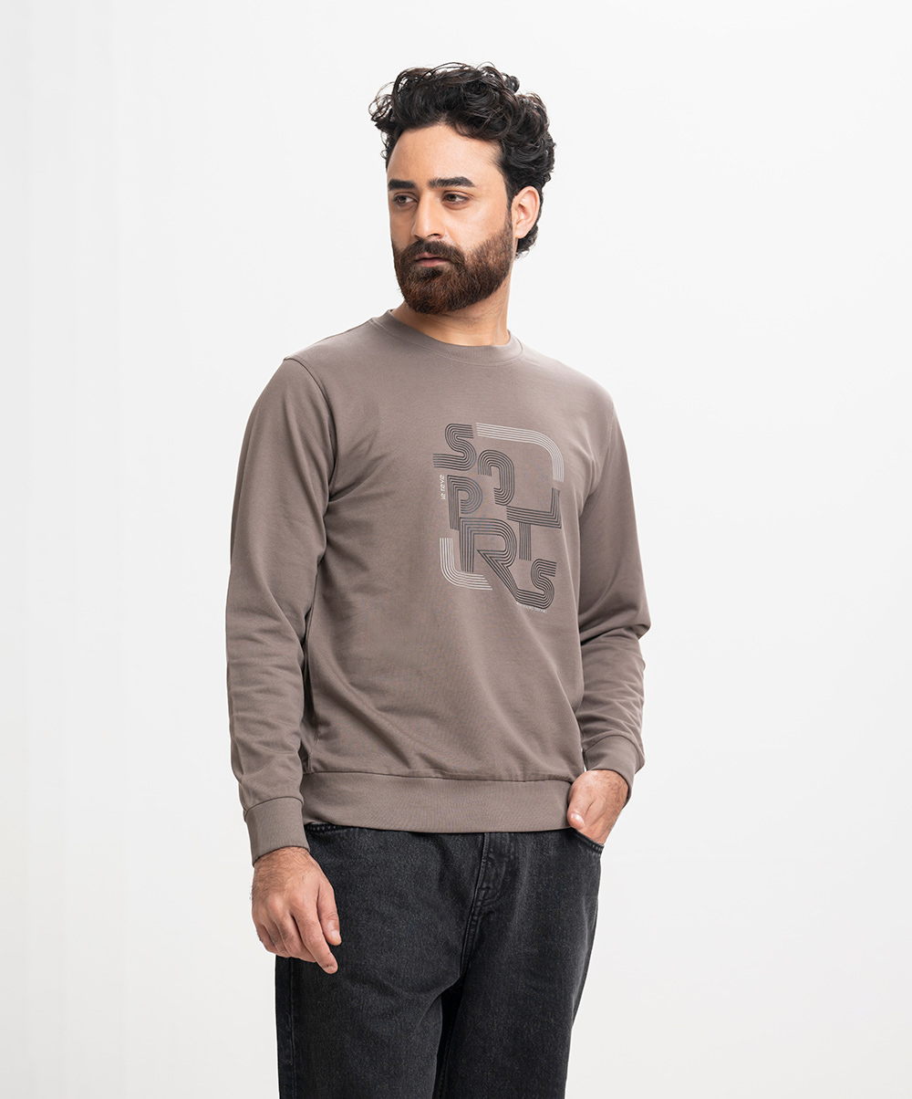 Brown Gray Terry Long Sleeve Sweatshirt