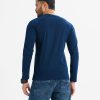 Blue Cotton Long Sleeve Round Neck T-Shirt