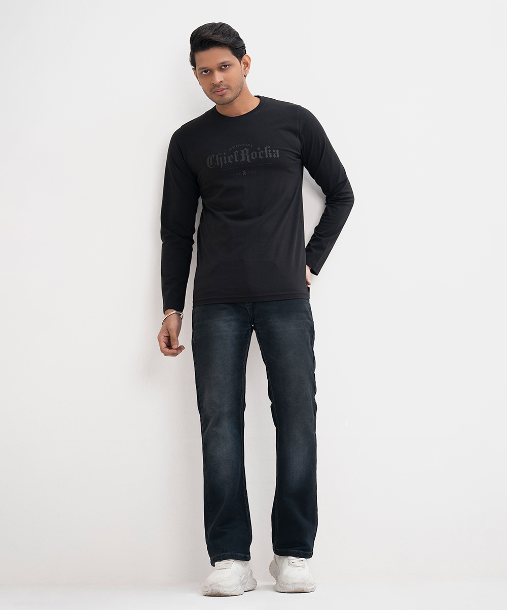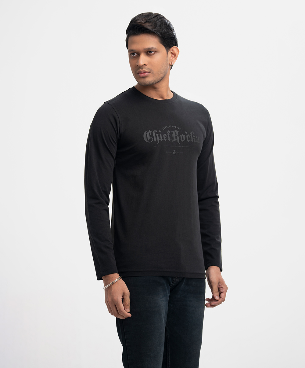 Men’s winter t-shirt in cotton single jersey fabric. Crew ribbed neck, long sleeves and print on the chest.
