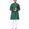 Green fitted Panjabi in Jacquard Cotton fabric. Metal button fastening on the chest.