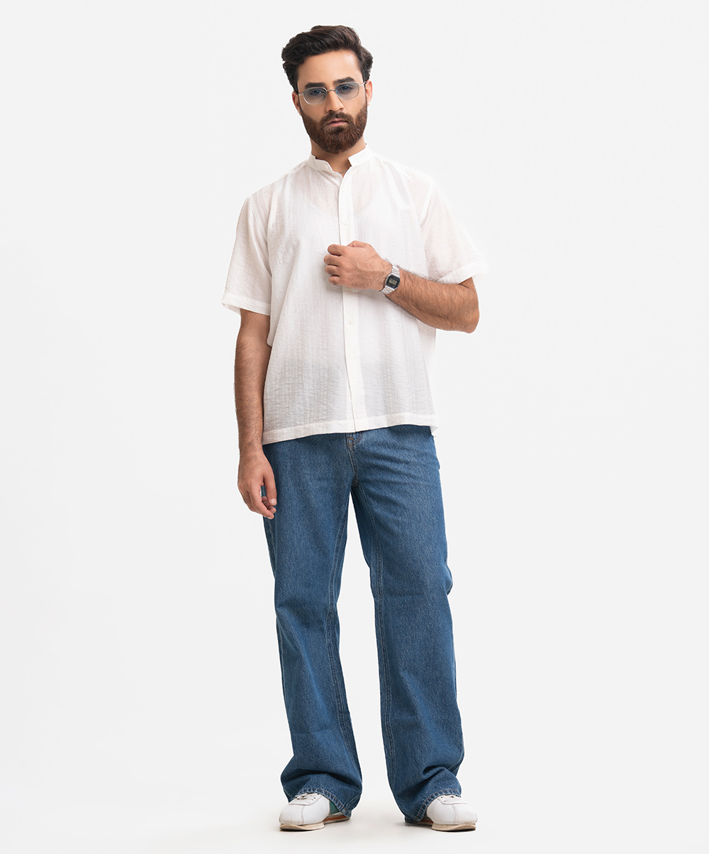 White Lyocell Short Sleeve Casual Shirt
