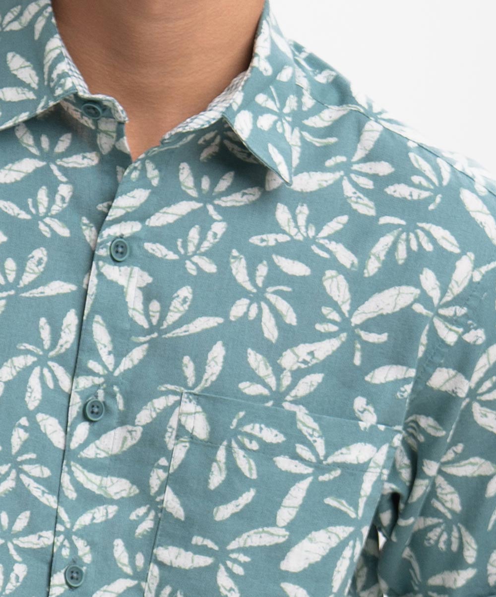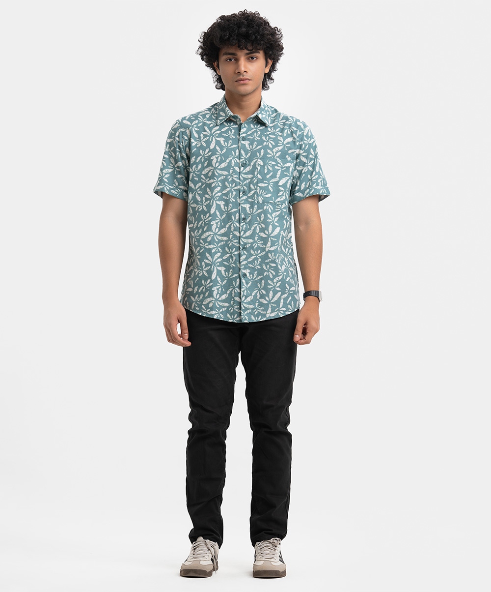Sea Green Cotton Short Sleeve Casual Shirt