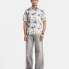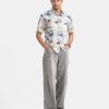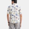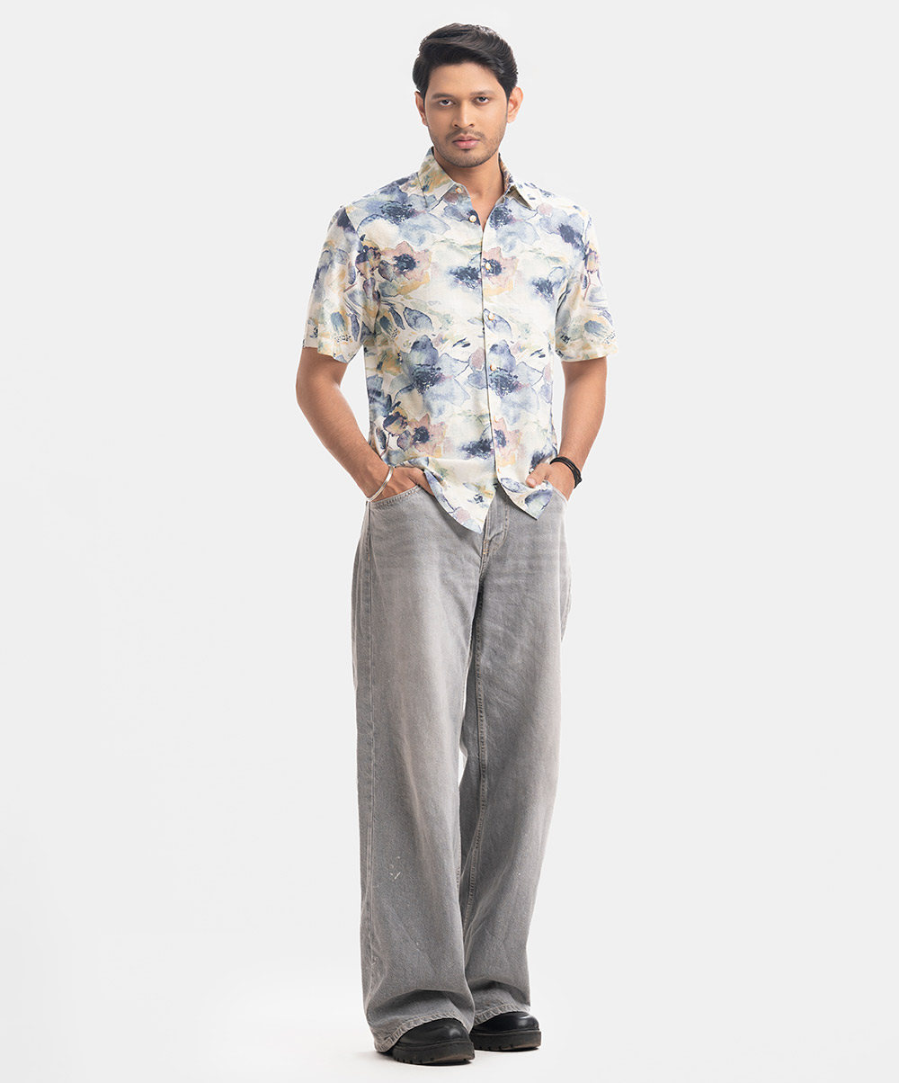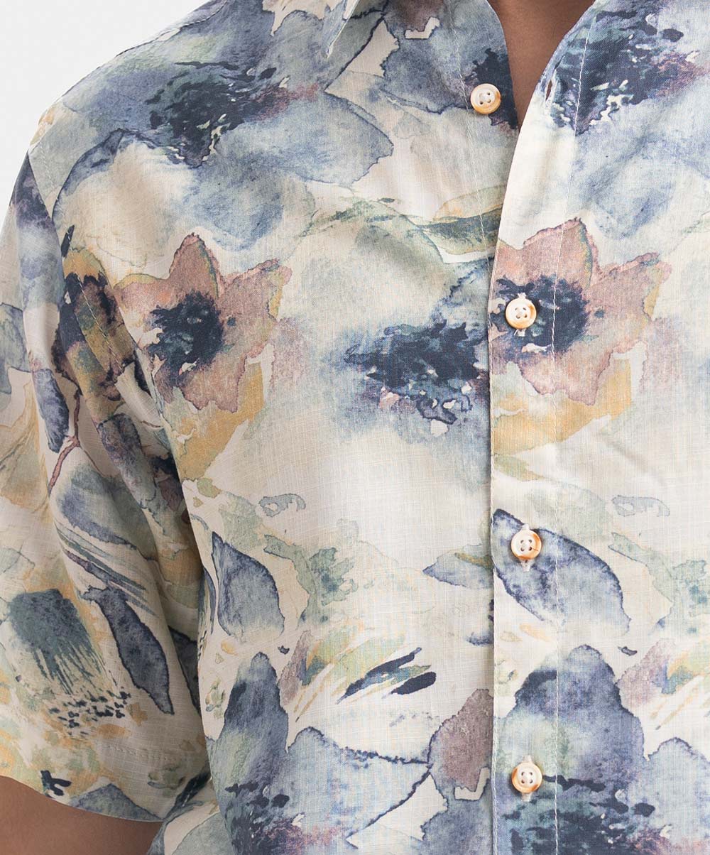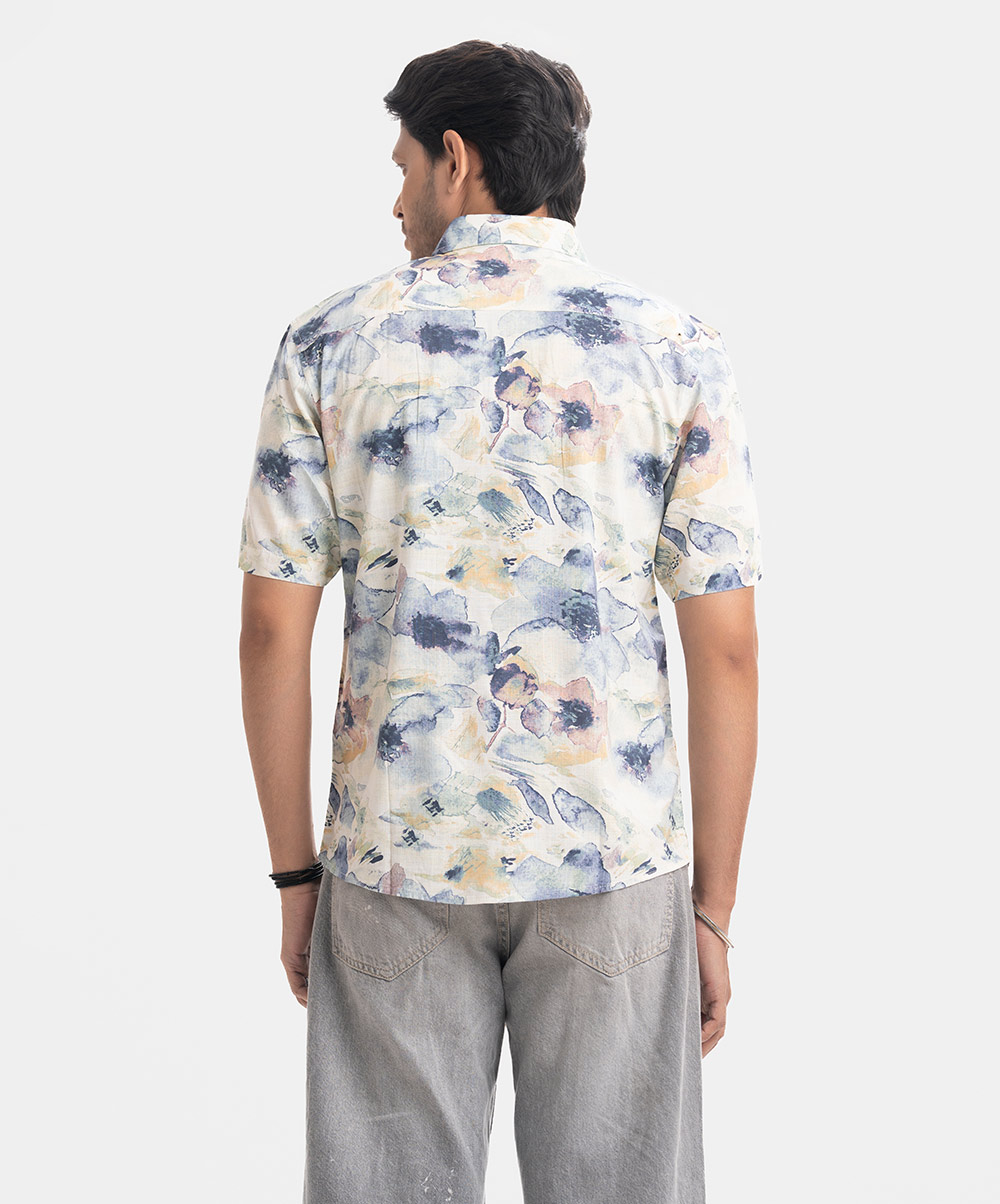 Printed Ramie Cotton Short Sleeve Casual Shirt