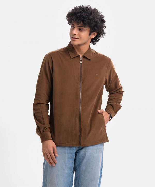 Men’s sleeved casual shirt in corduroy fabric. Classic collar with zipper opening and side pockets.
