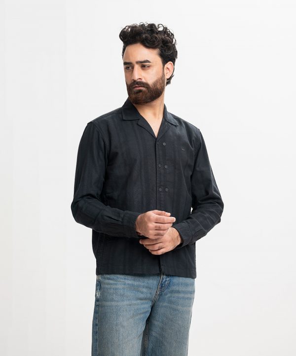 Black Jacquard Shacket Jacket