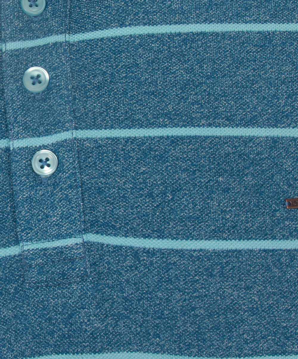 Blue mélange striped cotton pique polo designed with tipping rib collar & cuffs.